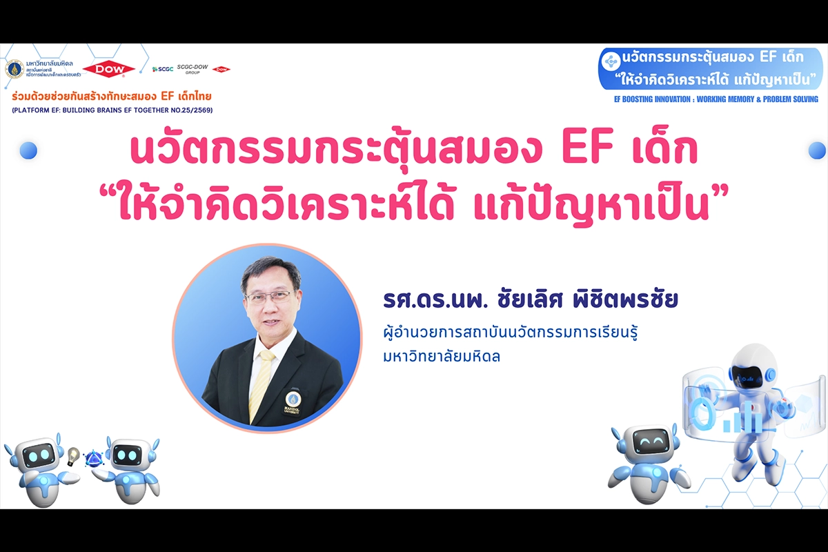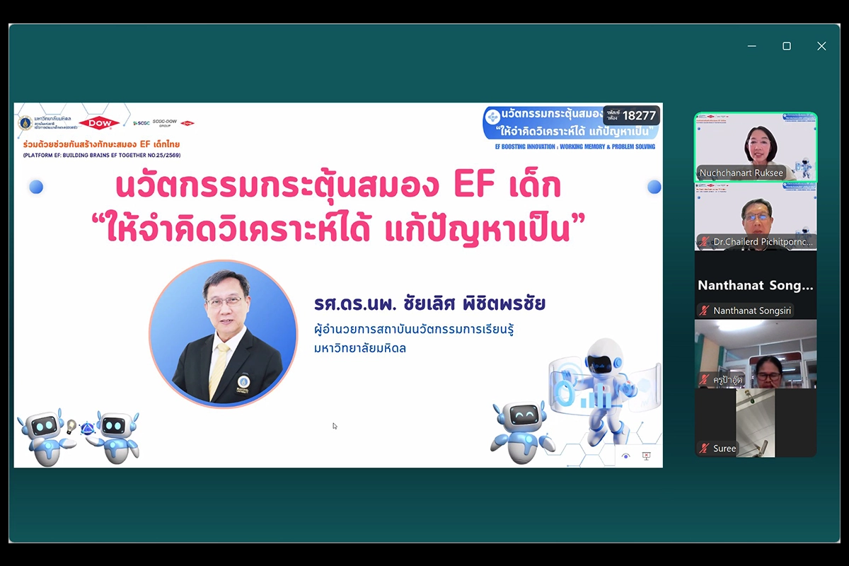 Associate Professor Dr. Chailerd Pichitpornchai, M.D., Director of the Institute for Innovative Learning, Mahidol University, was invited as a guest speaker to deliver a lecture on the topic “Innovations for Enhancing Children’s Executive Functions (EF): Enabling Memory, Analytical Thinking, and Problem-Solving Skills.”