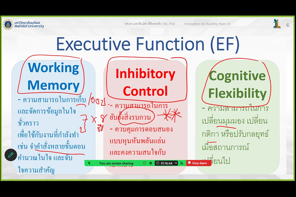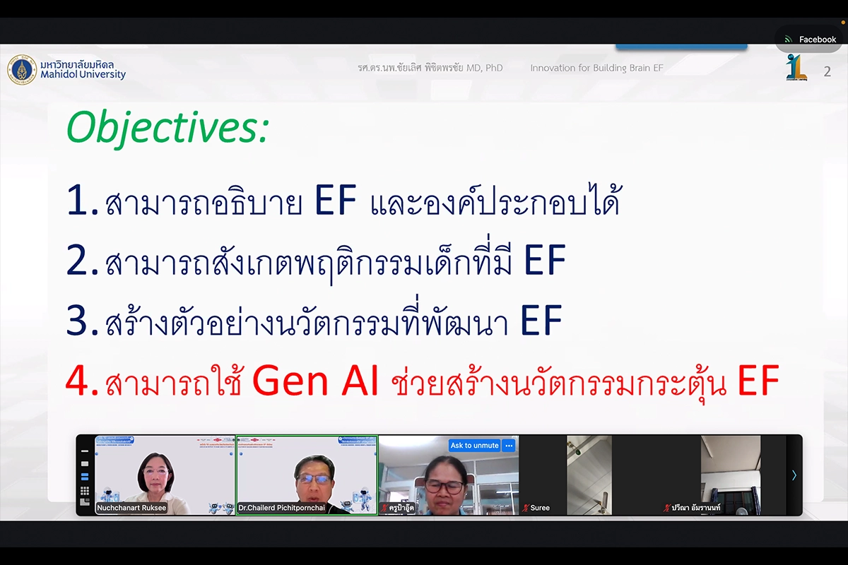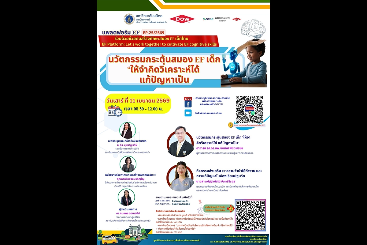 The session was organized by the National Institute for Child and Family Development, Mahidol University, with the aim of promoting knowledge and innovative approaches to support children’s cognitive development, particularly in executive function (EF), which is essential for learning, decision-making, and problem-solving.