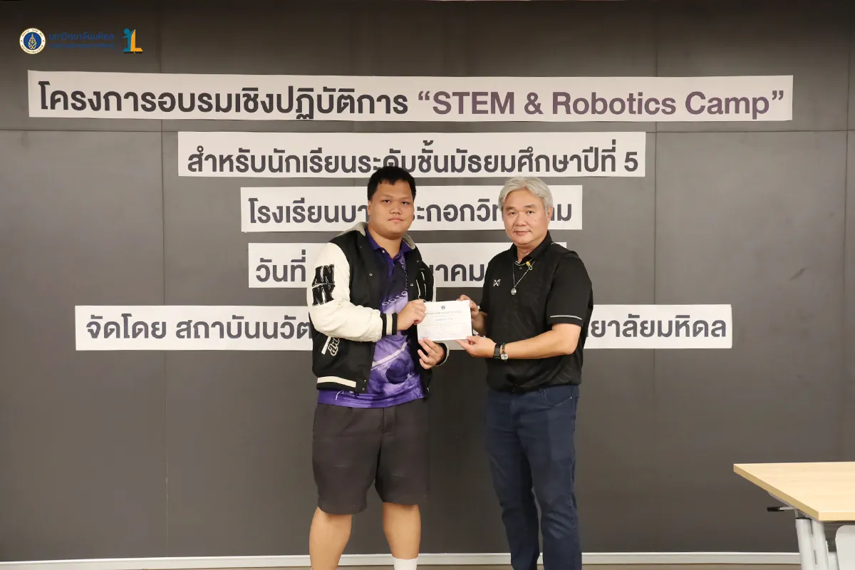 The Institute for Innovative Learning, Mahidol University, organized the workshop “STEM & Robotics Camp (SMART IoT Activity)” for students from the Science–Mathematics (Technology) Program, Grade 11/8, of Bangpakok Wittayakom School.