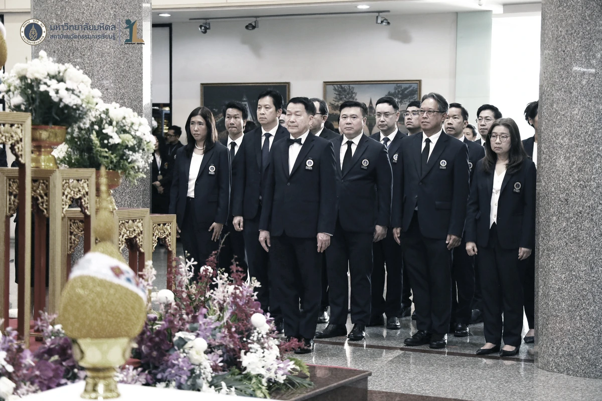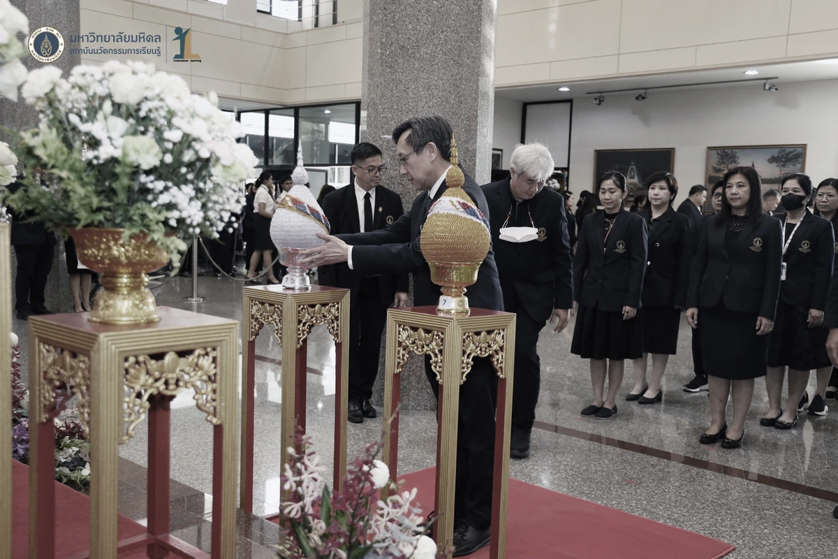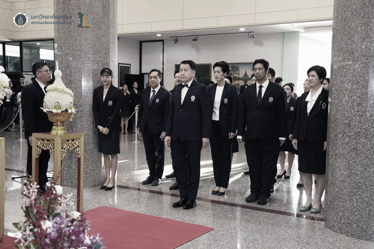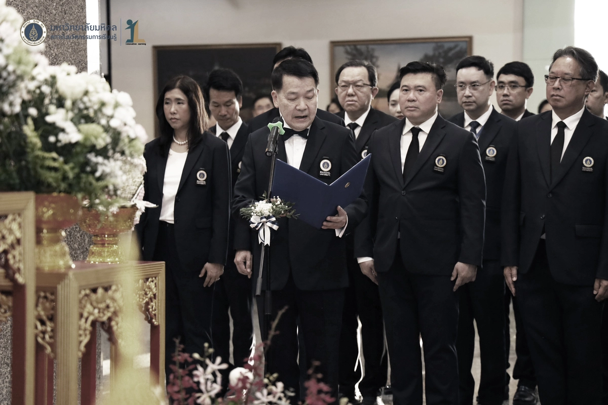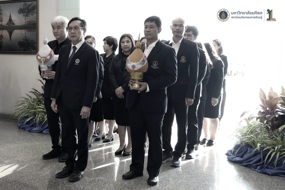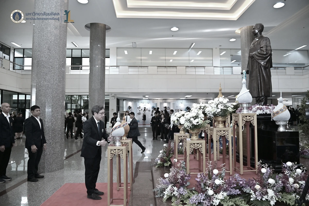รองศาสตราจารย์ ดร.นายแพทย์ชัยเลิศ พิชิตพรชัย ผู้อำนวยการสถาบันนวัตกรรมการเรียนรู้ มหาวิทยาลัยมหิดล พร้อมด้วย คณะผู้บริหาร คณาจารย์และบุคลากร เข้าร่วมพิธีวางพานพุ่มถวายสักการะพระรูป สมเด็จพระมหิตลาธิเบศวร อดุลยเดชวิกรม พระบรมราชชนก ในงานครบรอบ 57 ปี วันพระราชทานนาม 138 ปี มหาวิทยาลัยมหิดล วันที่ 2 มีนาคม 2569 ณ บริเวณโถงชั้น 1 สำนักงานอธิการบดี มหาวิทยาลัยมหิดล