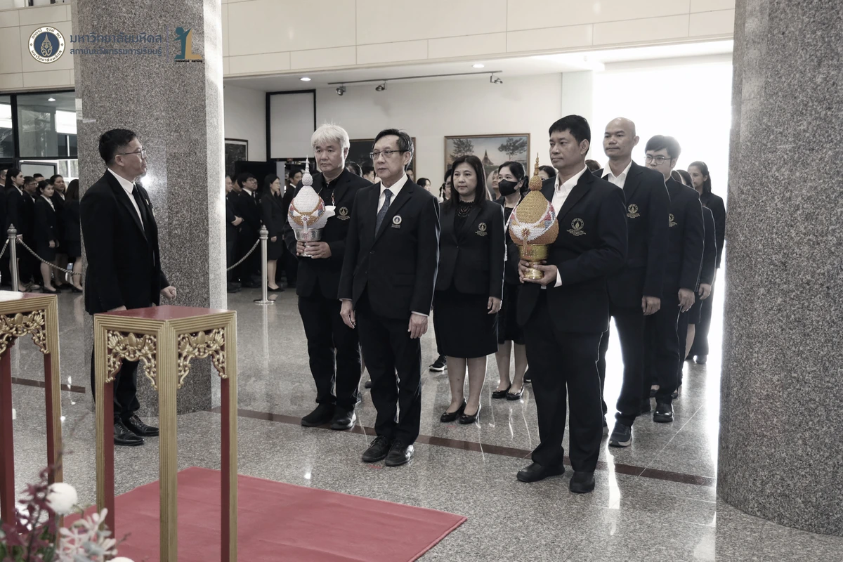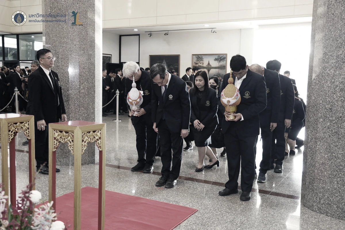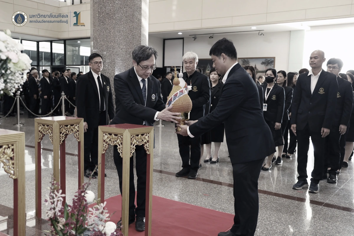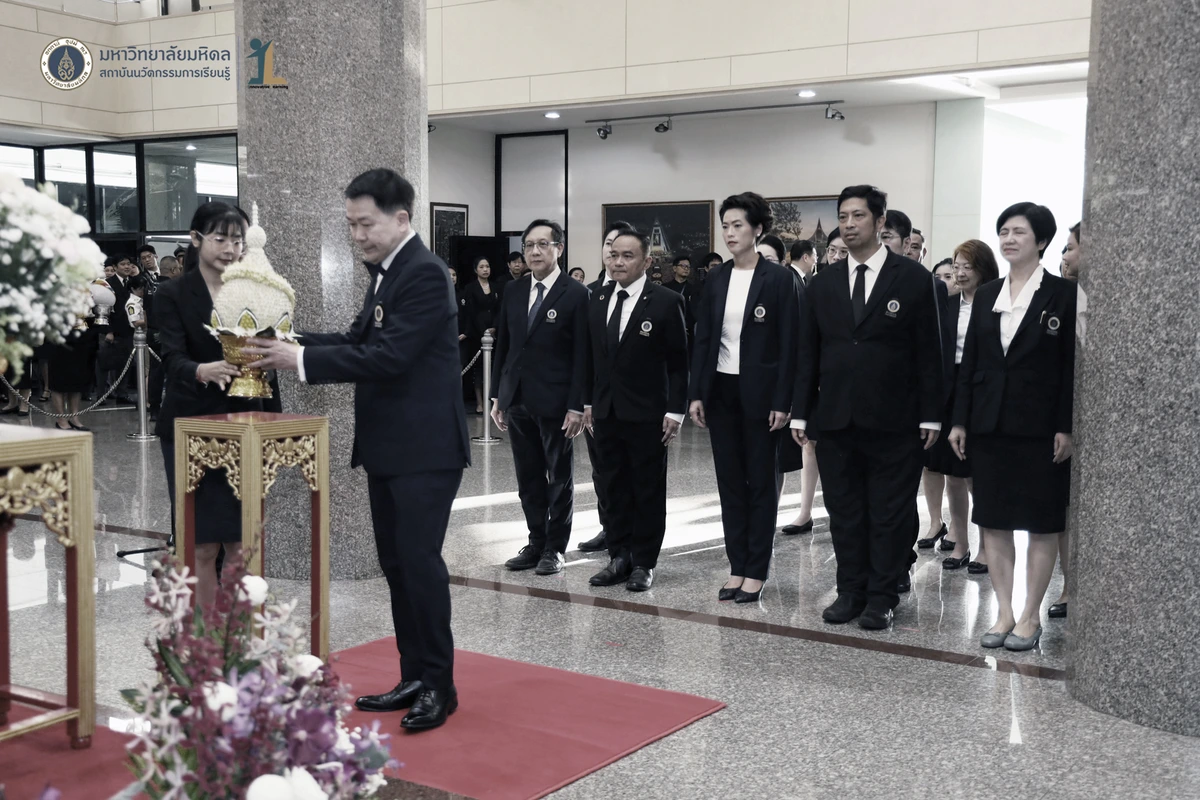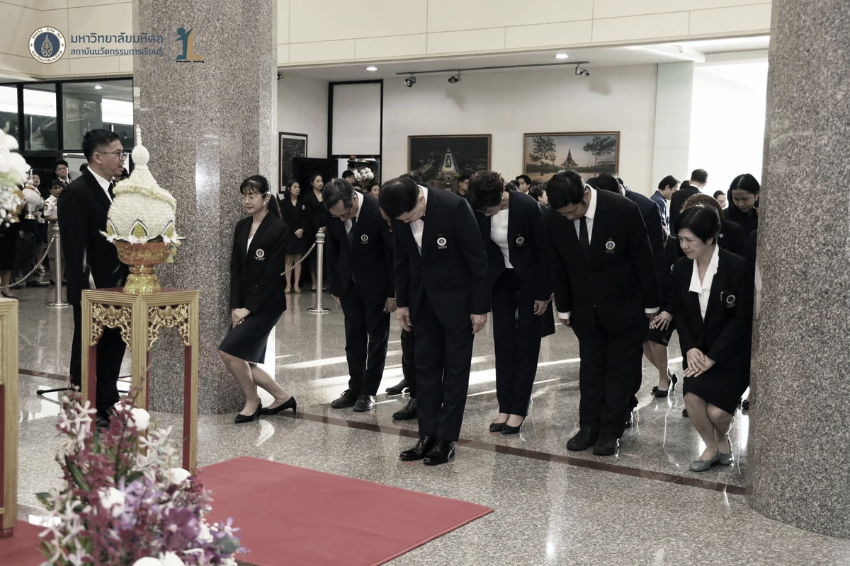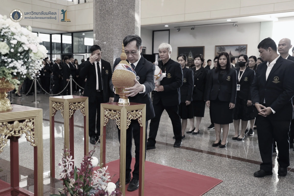 รองศาสตราจารย์ ดร.นายแพทย์ชัยเลิศ พิชิตพรชัย ผู้อำนวยการสถาบันนวัตกรรมการเรียนรู้ มหาวิทยาลัยมหิดล พร้อมด้วย คณะผู้บริหาร คณาจารย์และบุคลากร เข้าร่วมพิธีวางพานพุ่มถวายสักการะพระรูป สมเด็จพระมหิตลาธิเบศวร อดุลยเดชวิกรม พระบรมราชชนก ในงานครบรอบ 57 ปี วันพระราชทานนาม 138 ปี มหาวิทยาลัยมหิดล วันที่ 2 มีนาคม 2569 ณ บริเวณโถงชั้น 1 สำนักงานอธิการบดี มหาวิทยาลัยมหิดล