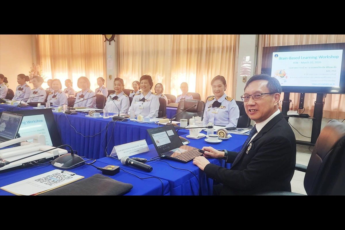 รองศาสตราจารย์ ดร.นายแพทย์ชัยเลิศ พิชิตพรชัย ผู้อำนวยการสถาบันนวัตกรรมการเรียนรู้ มหาวิทยาลัยมหิดล ได้รับเชิญเป็นวิทยากรโครงการอบรมเชิงปฏิบัติการ “การเรียนรู้ด้วยกระบวนการ Active Learning ตามแนวคิดการใช้สมองเป็นฐาน (Brain-based Learning) เพื่อสร้างการเรียนรู้ที่ยั่งยืน” วันที่ 10 มีนาคม 2569 ณ ห้องประชุม วิทยาลัยพยาบาลกองทัพเรือ ศูนย์วิทยาการ กรมแพทย์ทหารเรือ