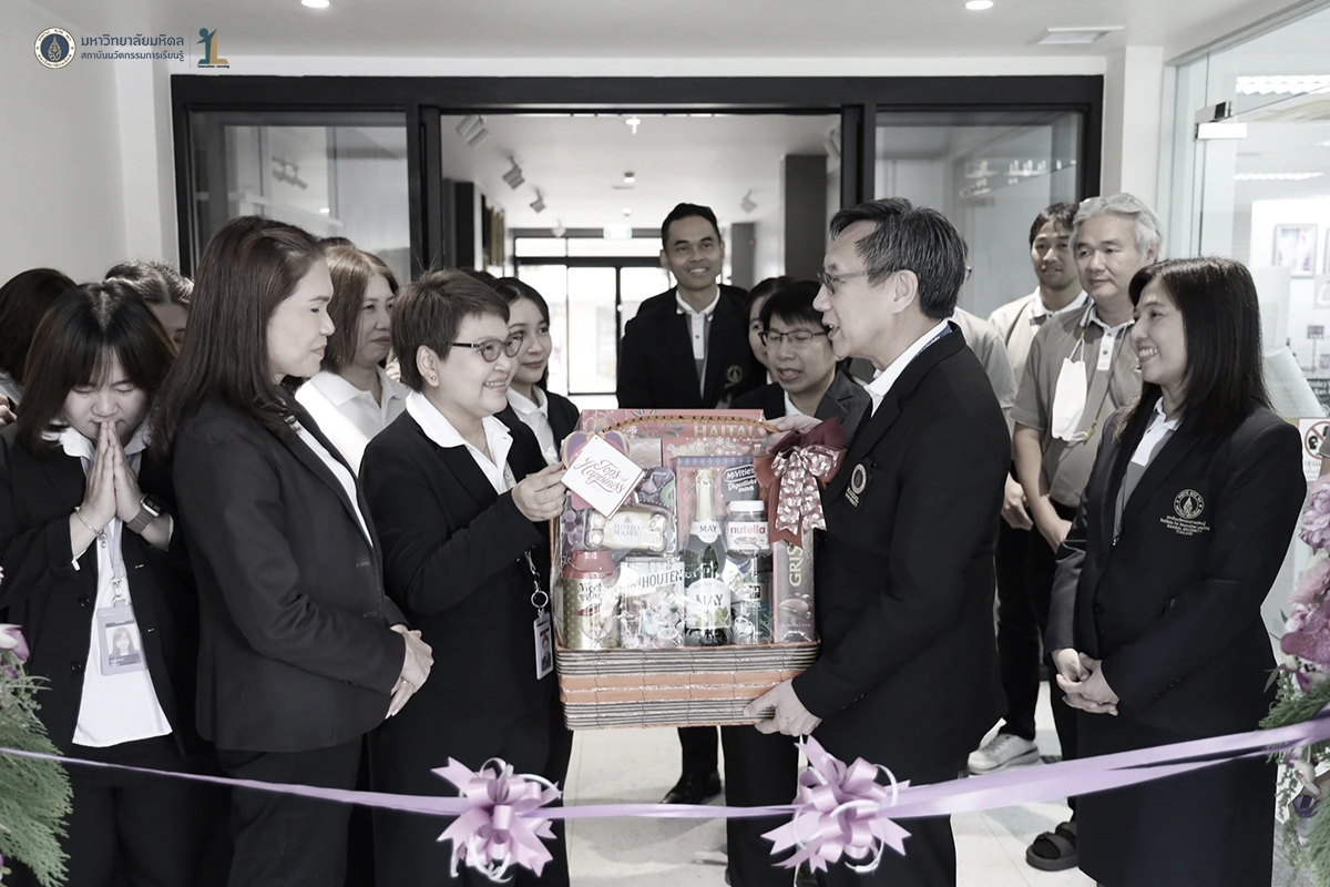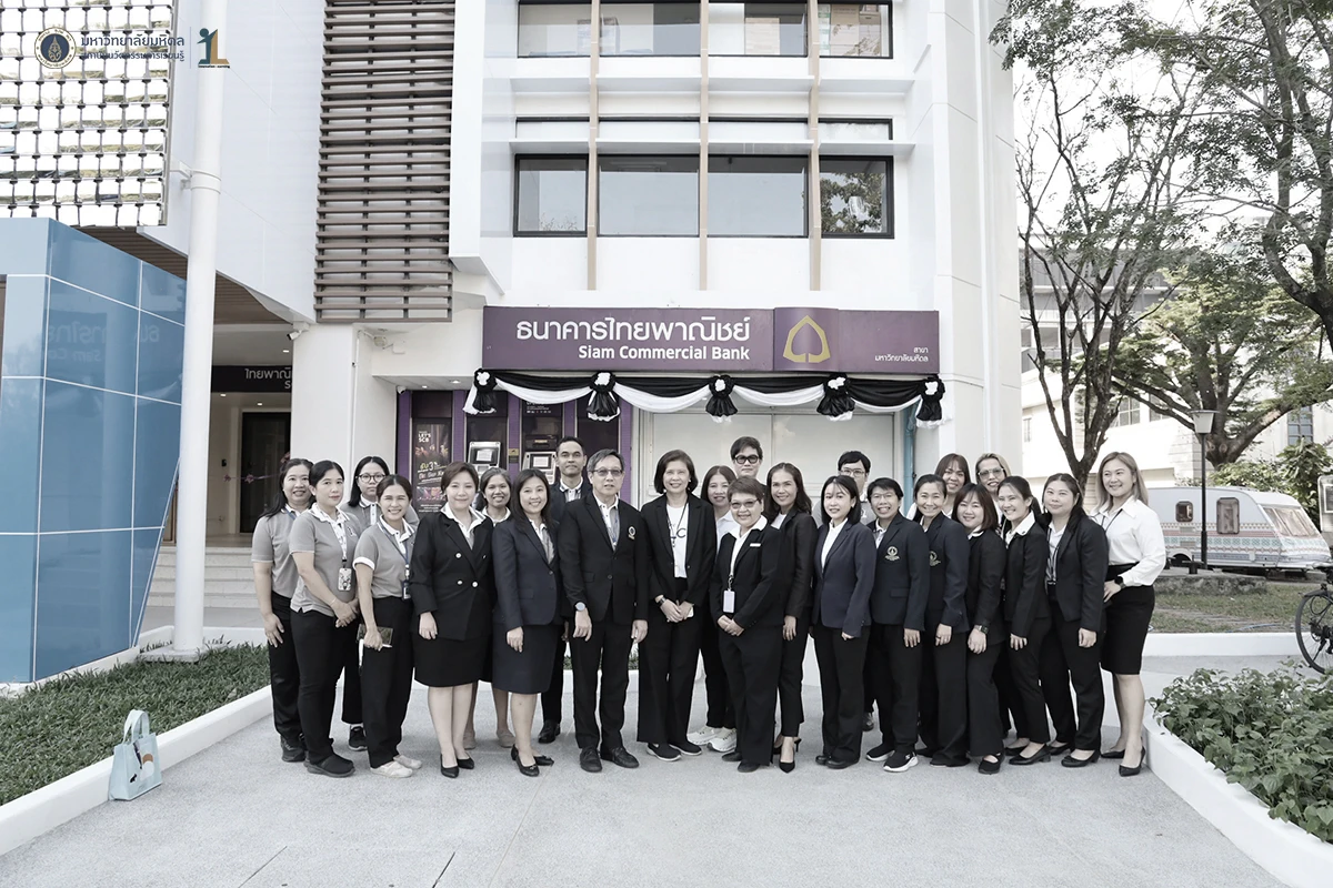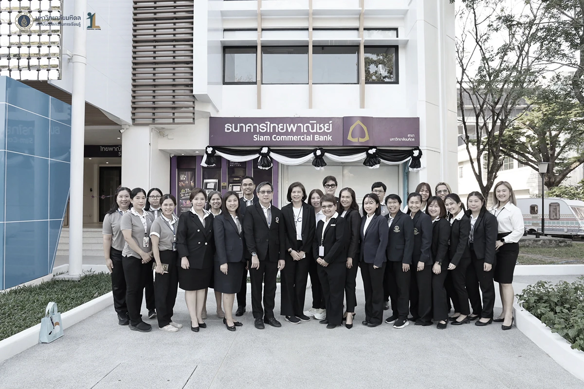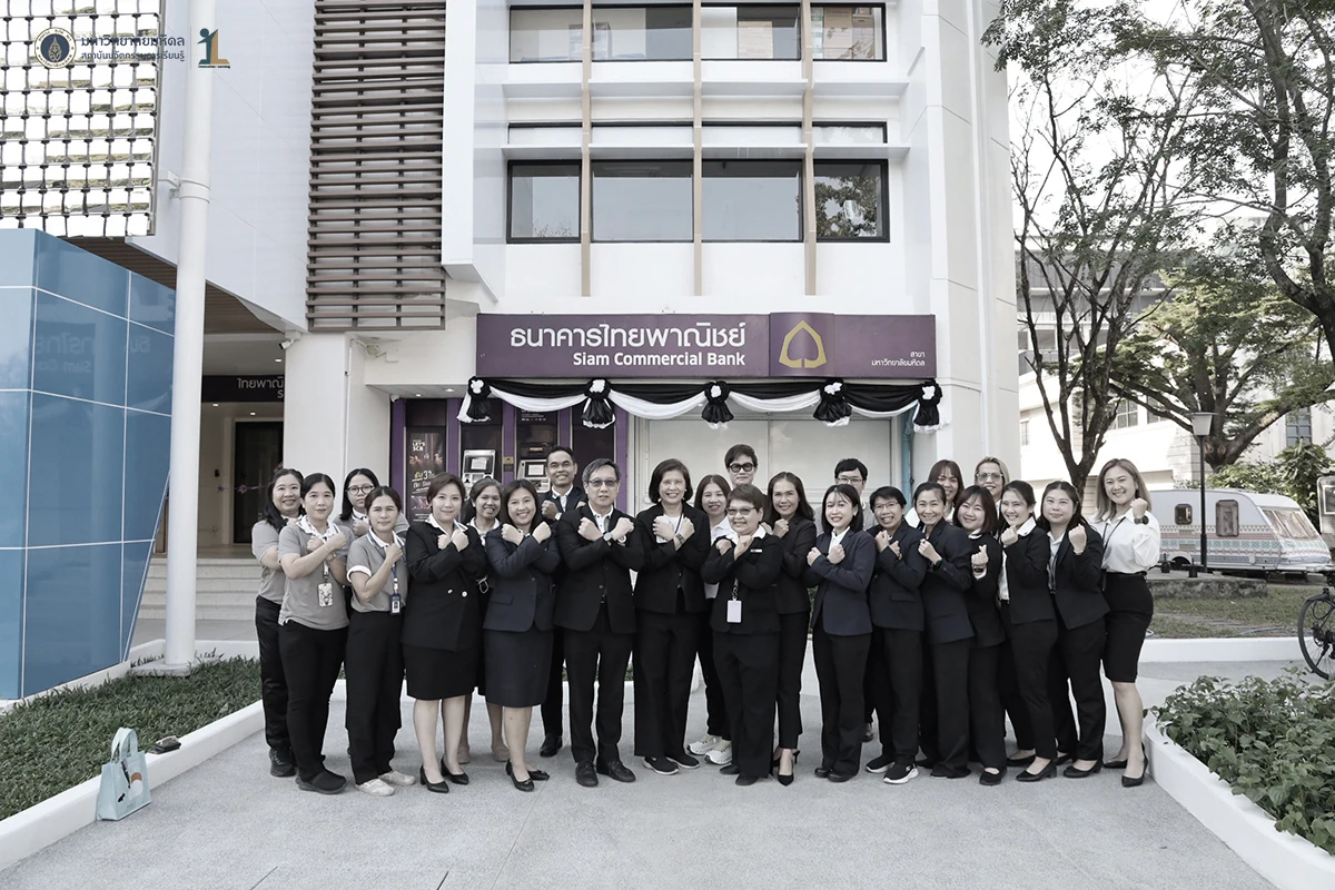 รองศาสตราจารย์ ดร. นายแพทย์ชัยเลิศ พิชิตพรชัย ผู้อำนวยการสถาบันนวัตกรรมการเรียนรู้ มหาวิทยาลัยมหิดล พร้อมด้วยผู้บริหาร คณาจารย์และบุคลากร ร่วมแสดงความยินดีกับธนาคารไทยพาณิชย์ ในพิธีเปิดทำการ ธนาคารไทยพาณิชย์ สาขามหาวิทยาลัยมหิดล ศาลายา ณ อาคารสถาบันนวัตกรรมการเรียนรู้ มหาวิทยาลัยมหิดล ในวันที่ 26 ธันวาคม 2568