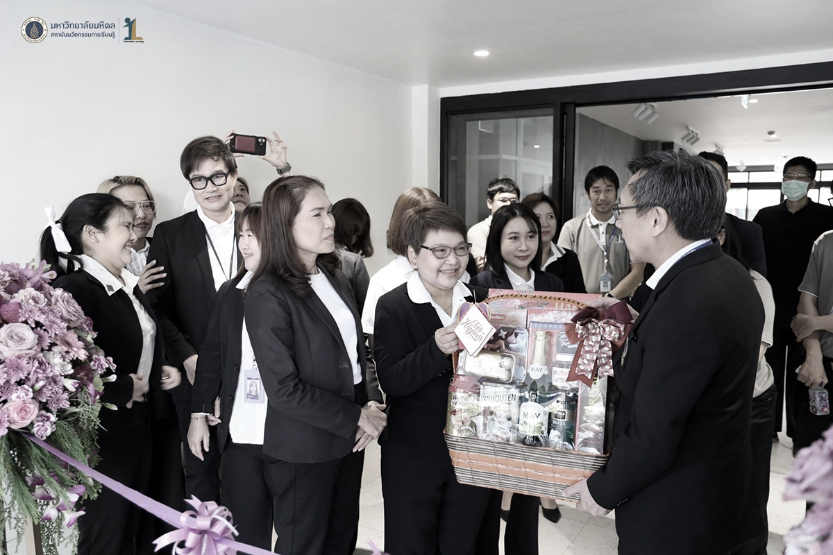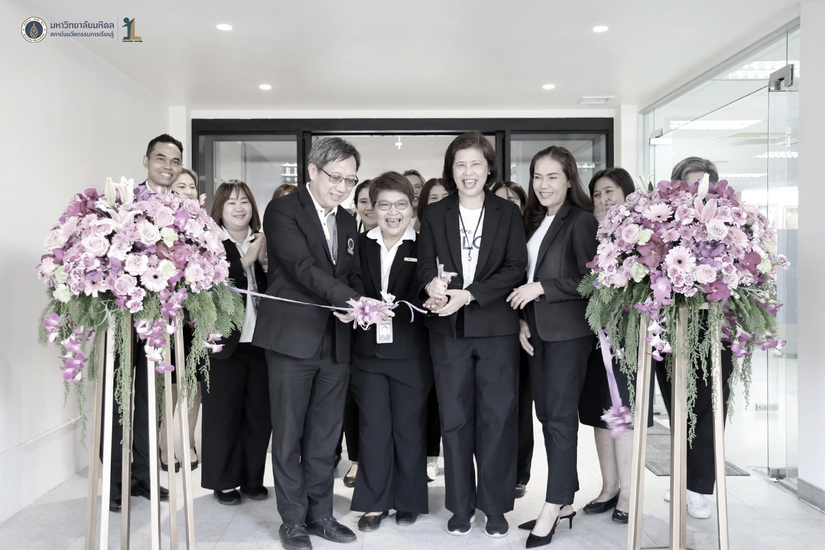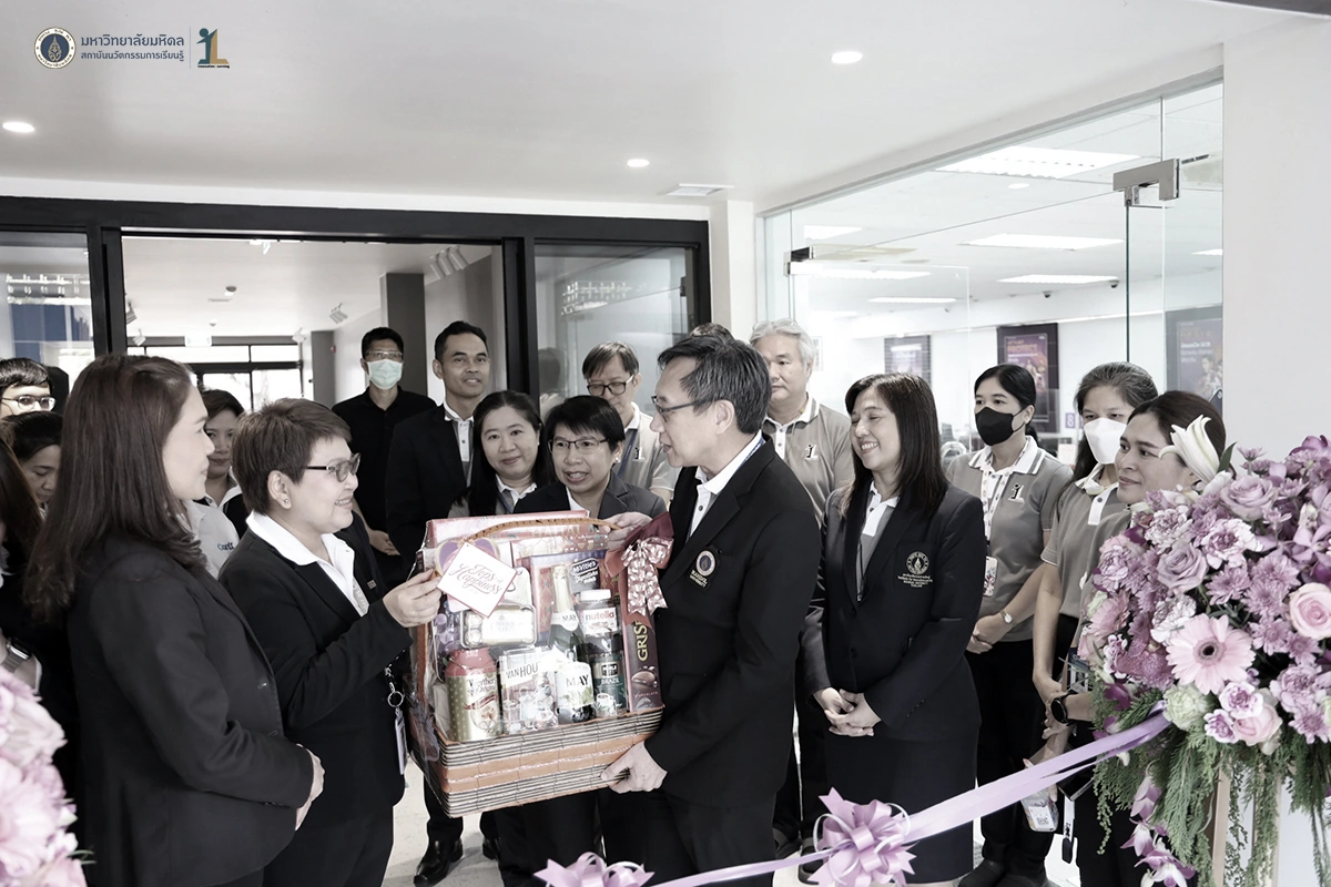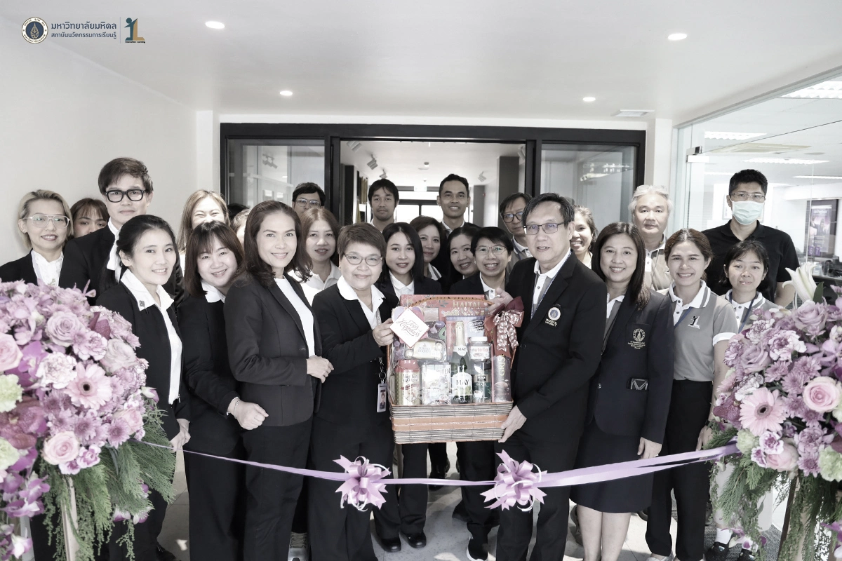 รองศาสตราจารย์ ดร. นายแพทย์ชัยเลิศ พิชิตพรชัย ผู้อำนวยการสถาบันนวัตกรรมการเรียนรู้ มหาวิทยาลัยมหิดล พร้อมด้วยผู้บริหาร คณาจารย์และบุคลากร ร่วมแสดงความยินดีกับธนาคารไทยพาณิชย์ ในพิธีเปิดทำการ ธนาคารไทยพาณิชย์ สาขามหาวิทยาลัยมหิดล ศาลายา ณ อาคารสถาบันนวัตกรรมการเรียนรู้ มหาวิทยาลัยมหิดล ในวันที่ 26 ธันวาคม 2568