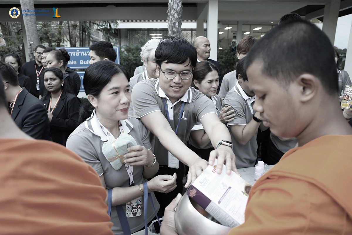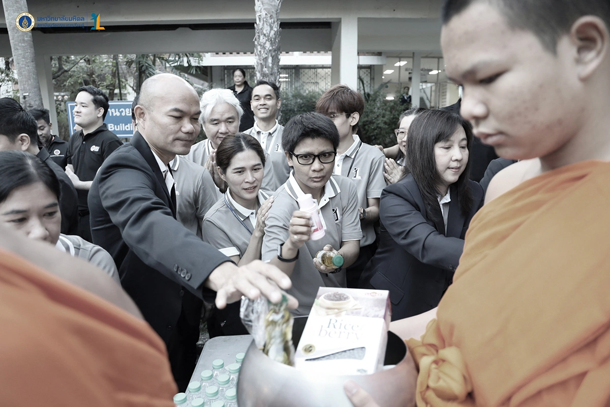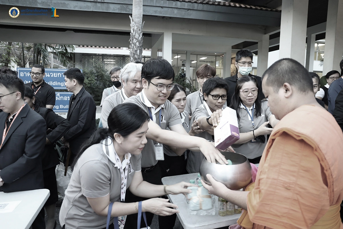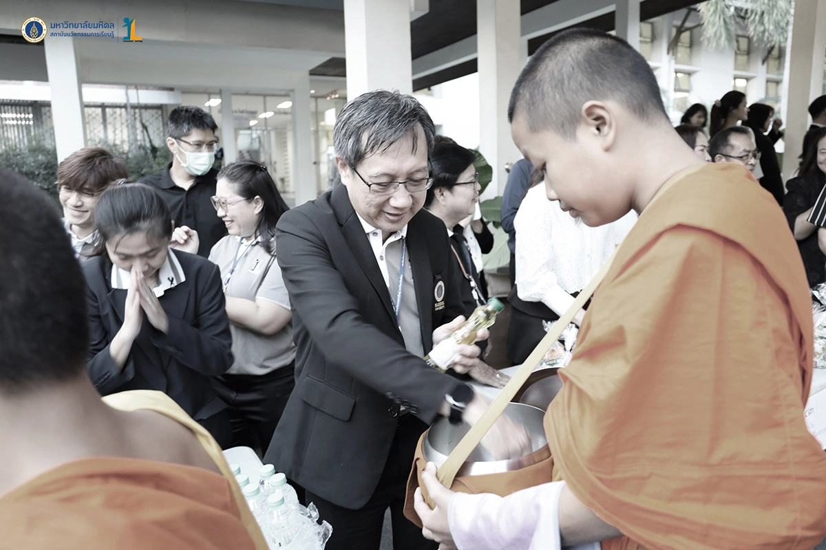 รองศาสตราจารย์ ดร. นายแพทย์ชัยเลิศ พิชิตพรชัย ผู้อำนวยการสถาบันนวัตกรรมการเรียนรู้ มหาวิทยาลัยมหิดล พร้อมด้วยผู้บริหาร คณาจารย์และบุคลากร ร่วมพิธีทำบุญตักบาตรพระสงฆ์จำนวน 30 รูป เนื่องในศุภมงคลสมัยขึ้นปีใหม่ ปีพุทธศักราช 2569 วันที่ 26 ธันวาคม 2568 ณ บริเวณหอพระพุทธมหาสิริพีรยพัฒน์ สถาบันพัฒนาสุขภาพอาเซียน มหาวิทยาลัยมหิดล