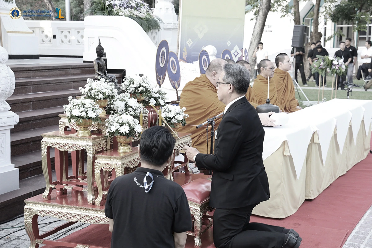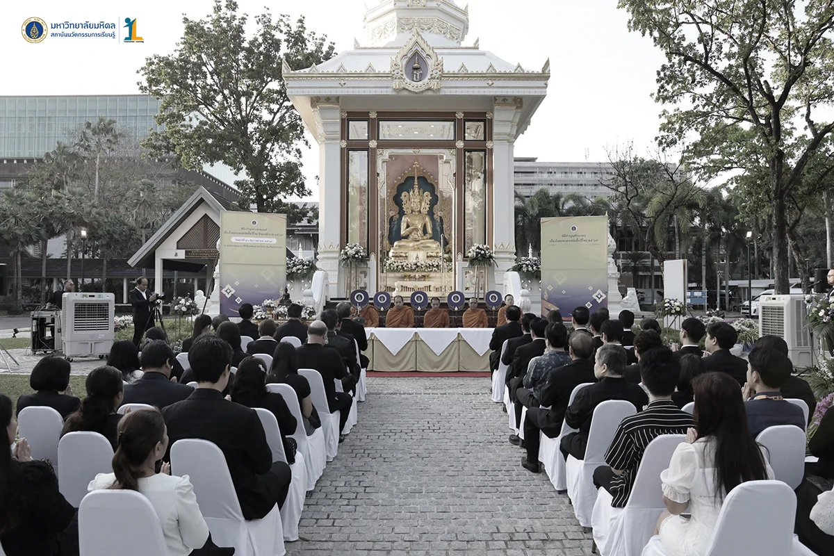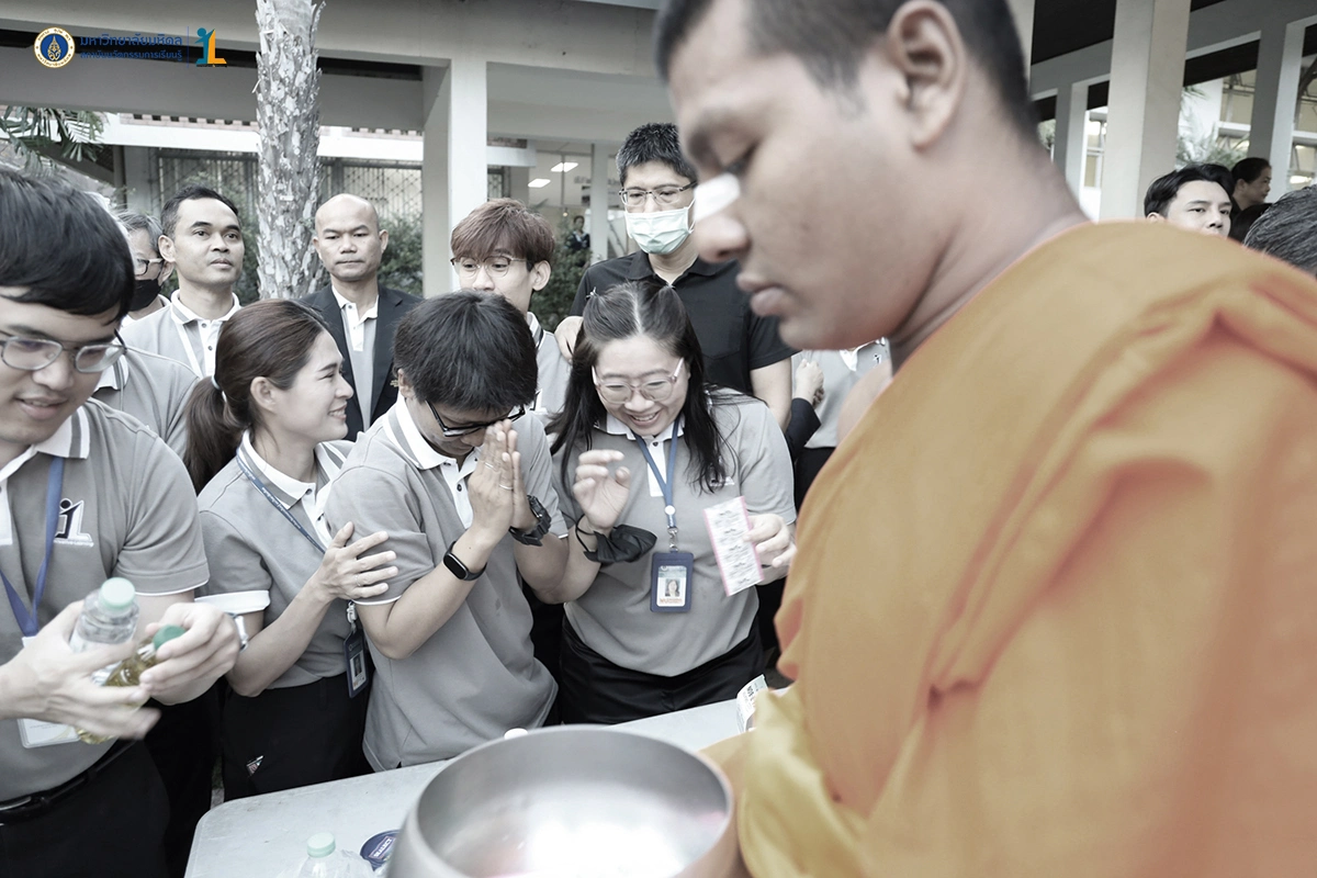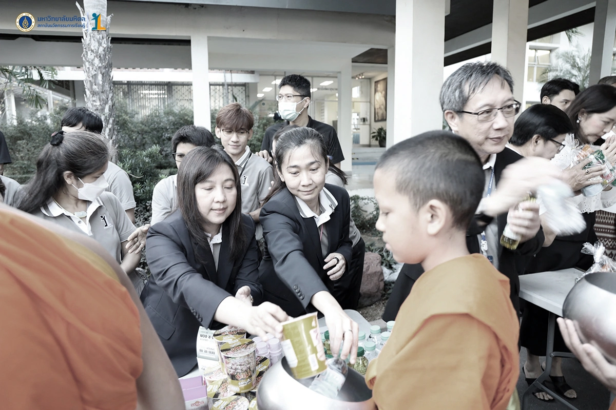 รองศาสตราจารย์ ดร. นายแพทย์ชัยเลิศ พิชิตพรชัย ผู้อำนวยการสถาบันนวัตกรรมการเรียนรู้ มหาวิทยาลัยมหิดล พร้อมด้วยผู้บริหาร คณาจารย์และบุคลากร ร่วมพิธีทำบุญตักบาตรพระสงฆ์จำนวน 30 รูป เนื่องในศุภมงคลสมัยขึ้นปีใหม่ ปีพุทธศักราช 2569 วันที่ 26 ธันวาคม 2568 ณ บริเวณหอพระพุทธมหาสิริพีรยพัฒน์ สถาบันพัฒนาสุขภาพอาเซียน มหาวิทยาลัยมหิดล