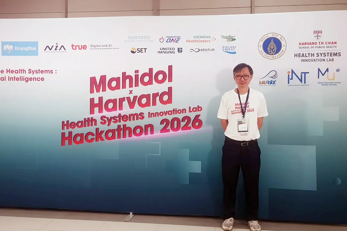 อาจารย์ ดร.ปรเมษฐ์ ธาราศักดิ์ และอาจารย์ ดร.ทพ. นนทวัชร จิรกิตตยากร อาจารย์ประจำสถาบันนวัตกรรมการเรียนรู้ มหาวิทยาลัยมหิดล ได้รับเกียรติเป็นที่ปรึกษาโครงการการแข่งขัน Mahidol x Harvard Health Systems Innovation Lab Hackathon 2026 ซึ่งจัดขึ้นระหว่างวันที่ 3–4 เมษายน 2569 ณ คณะทันตแพทยศาสตร์ มหาวิทยาลัยมหิดล วิทยาเขตพญาไท ภายใต้ความร่วมมือกับ มหาวิทยาลัยมหิดล และ Harvard University