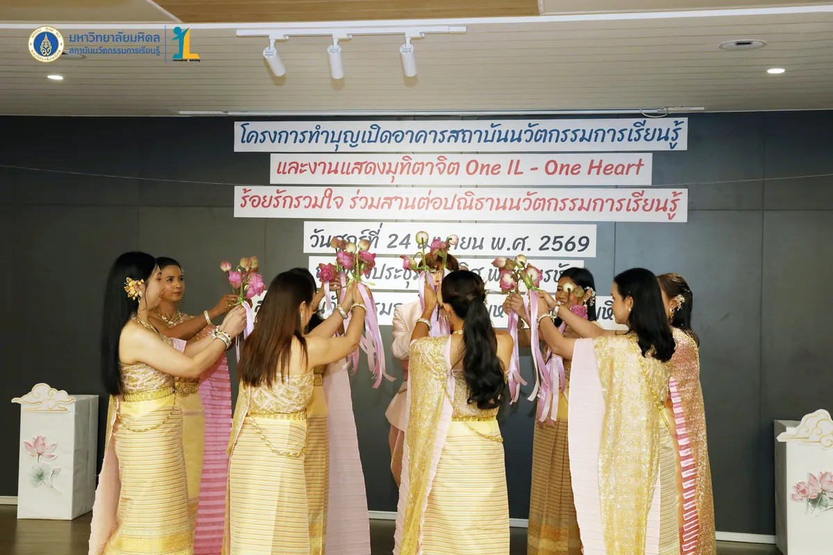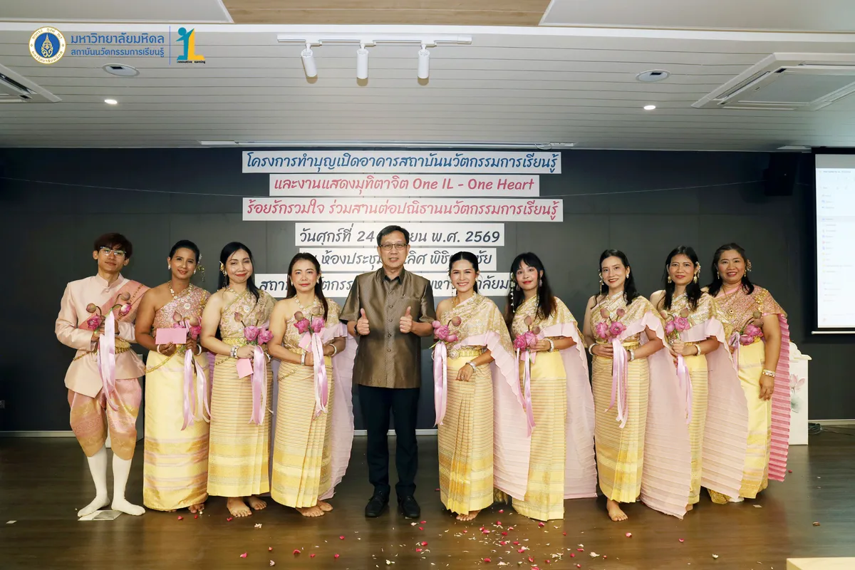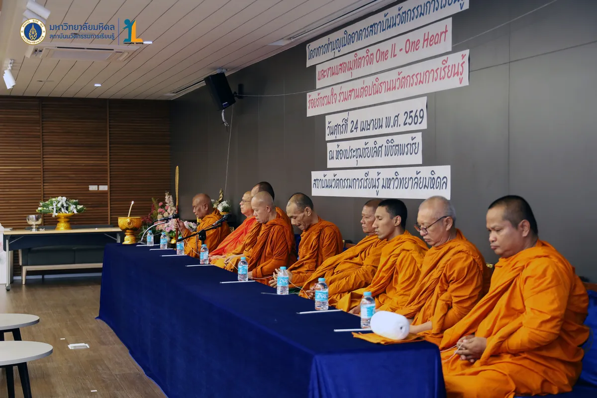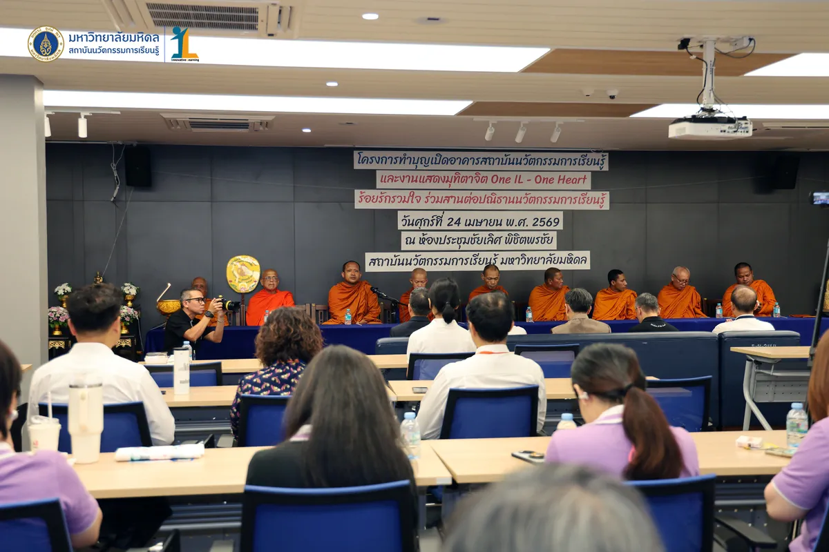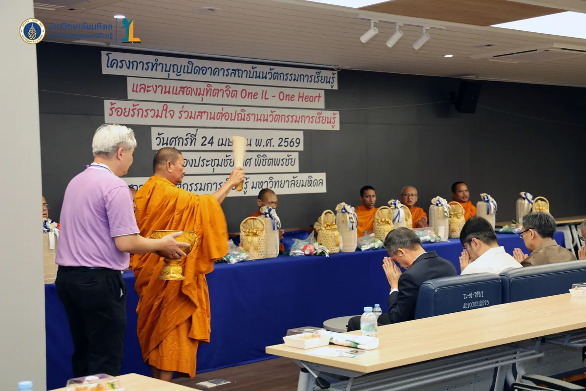 สถาบันนวัตกรรมการเรียนรู้ มหาวิทยาลัยมหิดล จัดงาน ทำบุญเปิดอาคารสถาบันนวัตกรรมการเรียนรู้ และงานแสดงมุทิตาจิต “One IL – One Heart ร้อยรักรวมใจ ร่วมสานต่อปณิธานนวัตกรรมการเรียนรู้” วันที่ 24 เมษายน พ.ศ. 2569 ณ ห้องประชุมชัยเลิศ พิชิตพรชัย ชั้น 1 อาคารสถาบันนวัตกรรมการเรียนรู้ มหาวิทยาลัยมหิดล ศาลายา