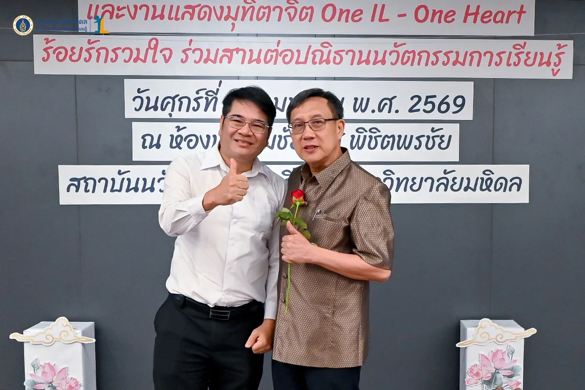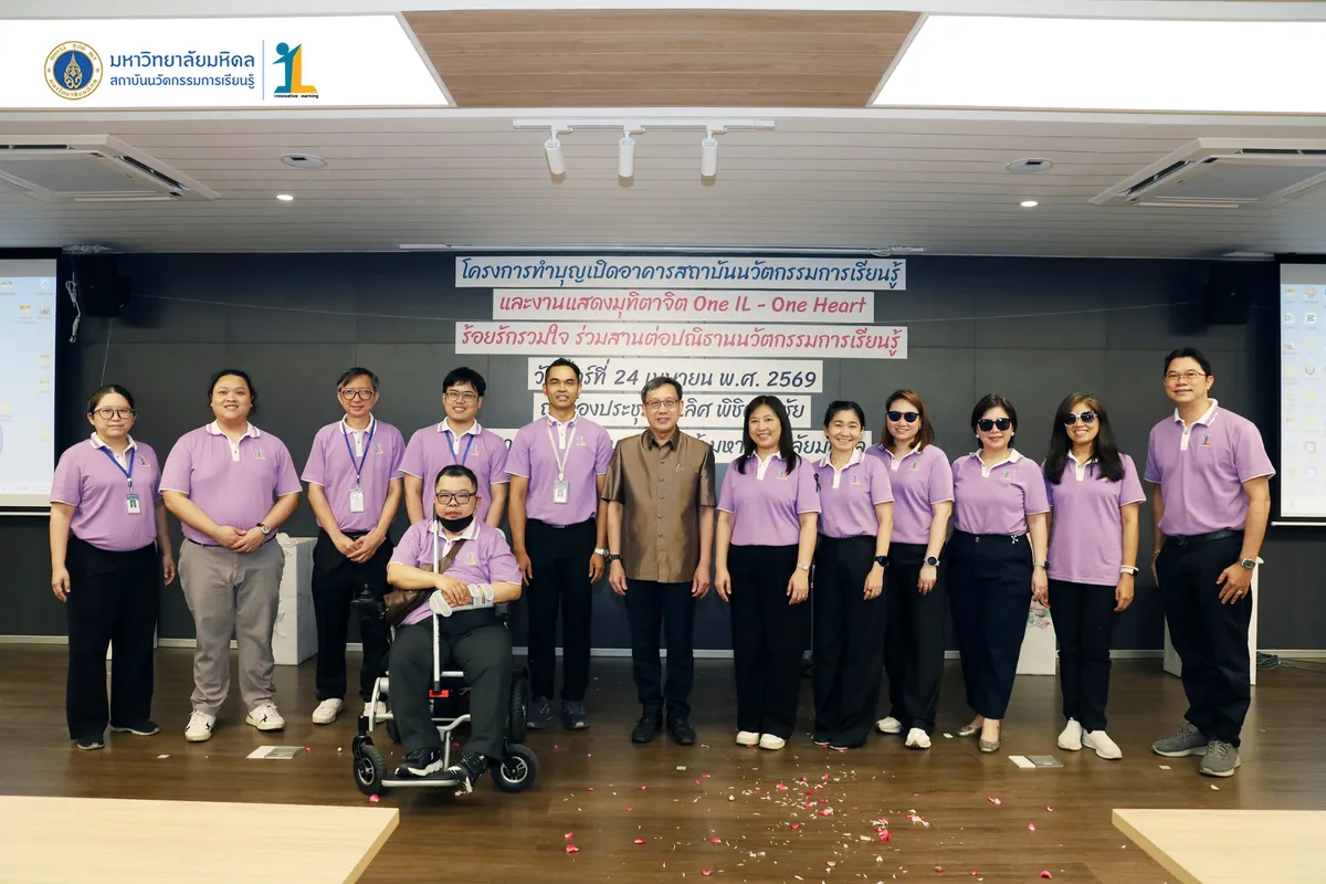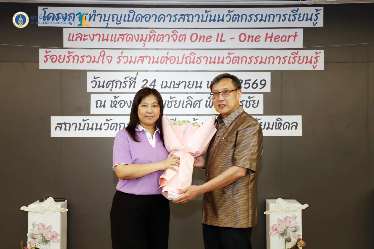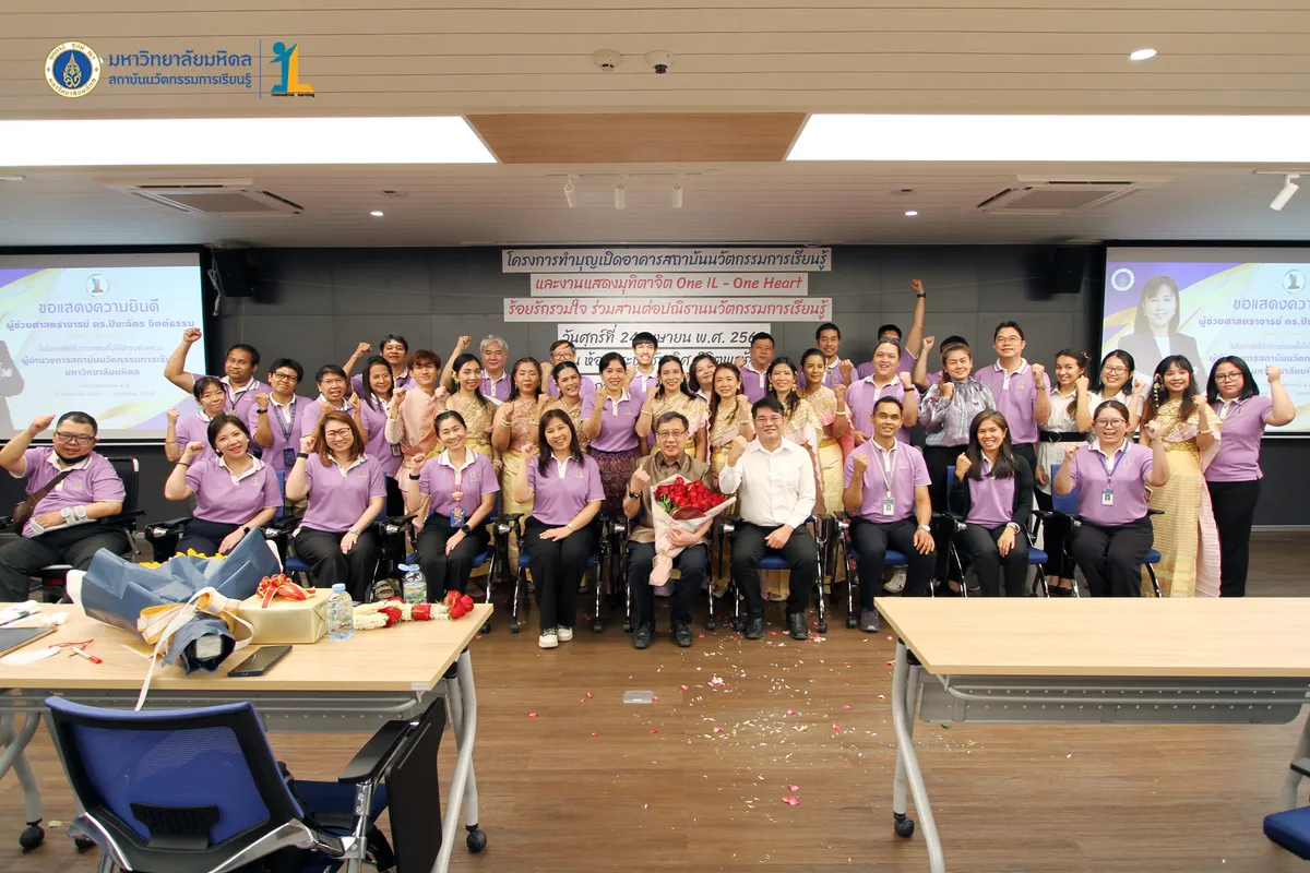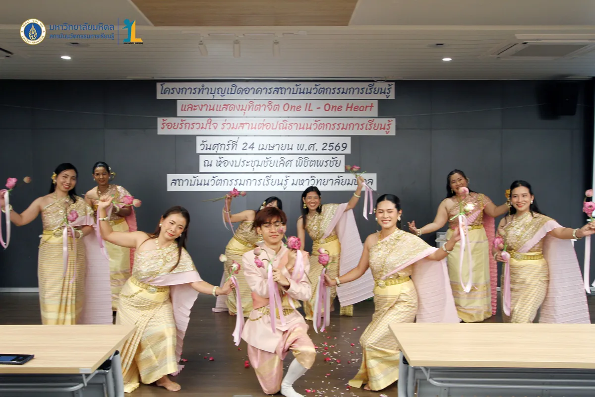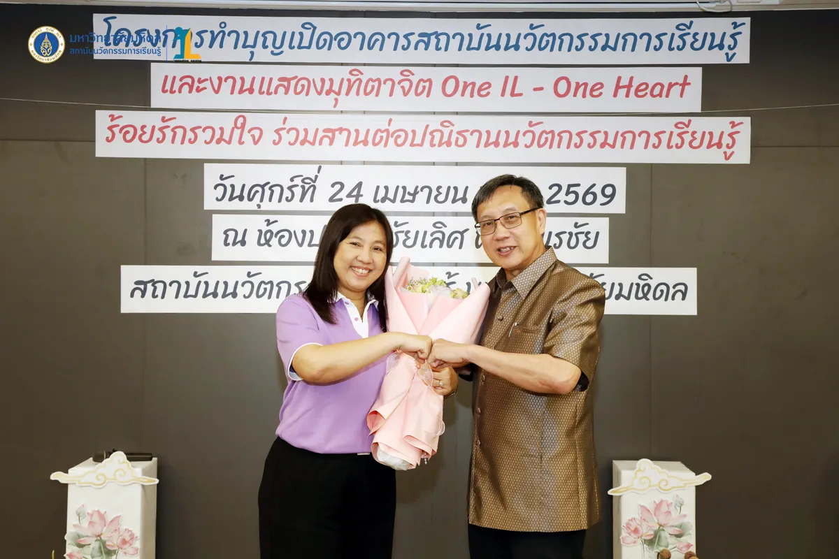 สถาบันนวัตกรรมการเรียนรู้ มหาวิทยาลัยมหิดล จัดงาน ทำบุญเปิดอาคารสถาบันนวัตกรรมการเรียนรู้ และงานแสดงมุทิตาจิต “One IL – One Heart ร้อยรักรวมใจ ร่วมสานต่อปณิธานนวัตกรรมการเรียนรู้” วันที่ 24 เมษายน พ.ศ. 2569 ณ ห้องประชุมชัยเลิศ พิชิตพรชัย ชั้น 1 อาคารสถาบันนวัตกรรมการเรียนรู้ มหาวิทยาลัยมหิดล ศาลายา