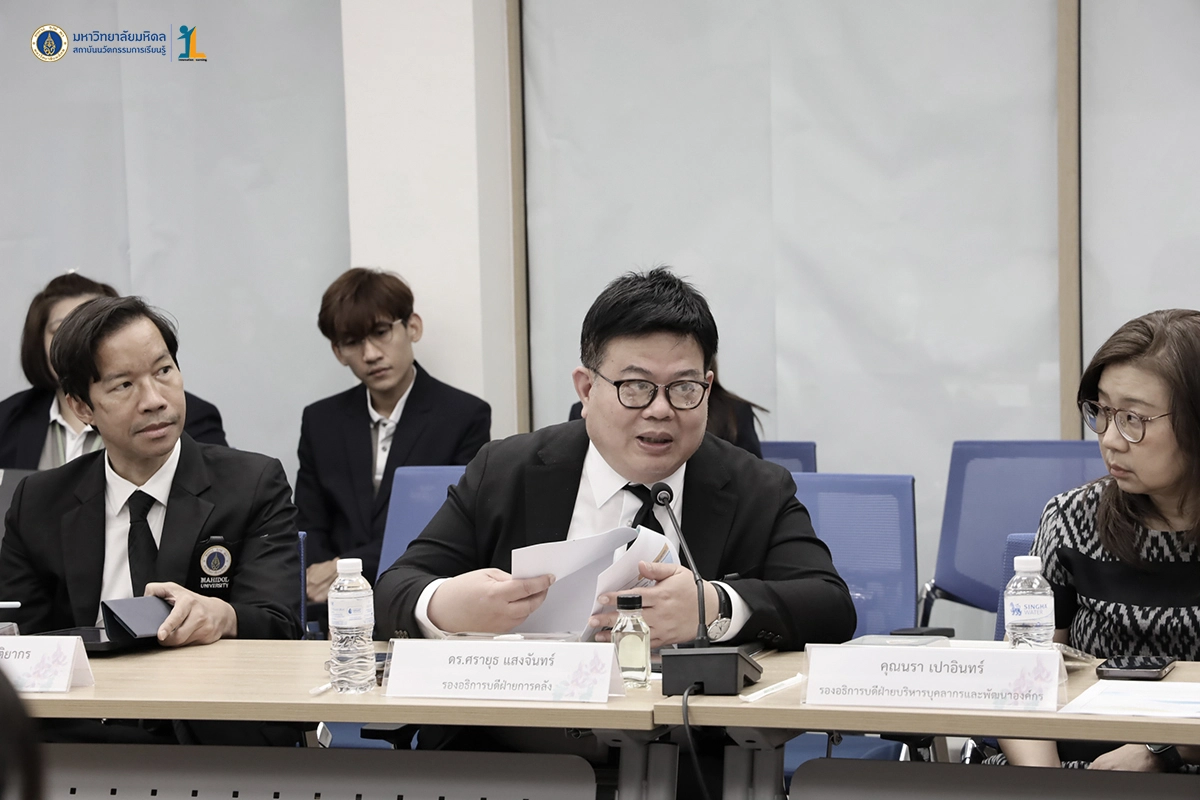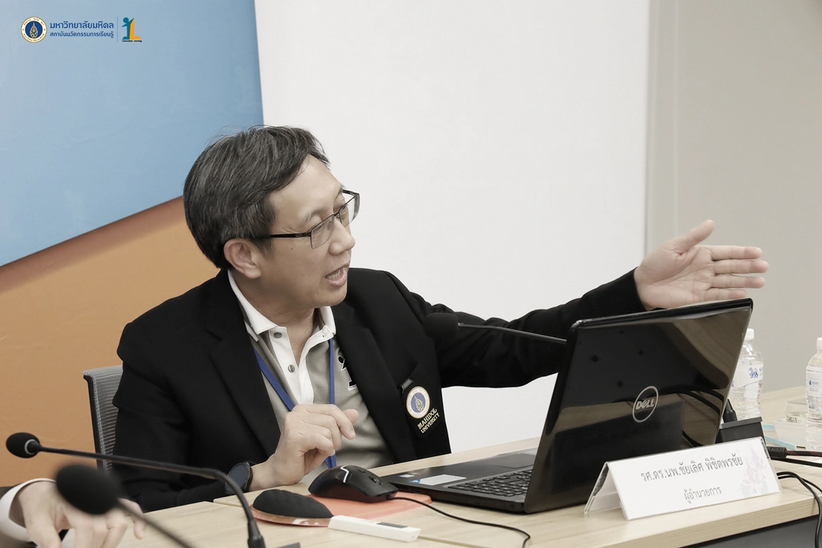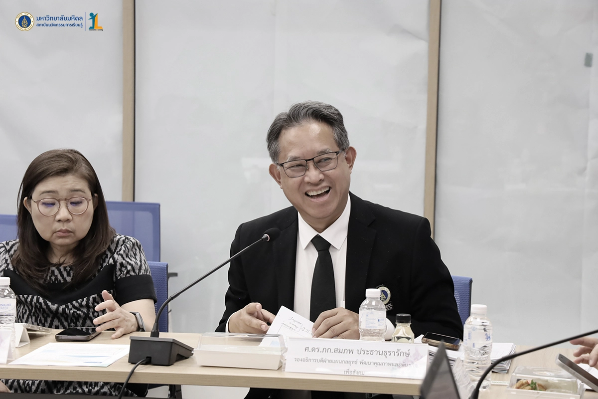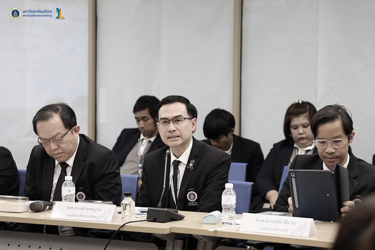 ศาสตราจารย์ นพ.ปิยะมิตร ศรีธรา อธิการบดี มหาวิทยาลัยมหิดล พร้อมด้วย คณะผู้บริหารมหาวิทยาลัยมหิดล เข้ารับฟังข้อตกลงการปฏิบัติงานของส่วนงาน (PA-Visit) ประจำปีงบประมาณ 2569 โดยมี รองศาสตราจารย์ ดร.นายแพทย์ชัยเลิศ พิชิตพรชัย ผู้อำนวยการสถาบันนวัตกรรมการเรียนรู้ นำเสนอผลการดำเนินงานของสถาบันนวัตกรรมการเรียนรู้พร้อมรับฟังข้อเสนอแนะในการดำเนินงาน ในปีงบประมาณ 2569 วันที่ 26 ธันวาคม 2568 ณ ห้องประชุมภิญโญ พานิชพันธ์ ชั้น 3 ห้อง 321 อาคารสถาบันนวัตกรรมการเรียนรู้ มหาวิทยาลัยมหิดล