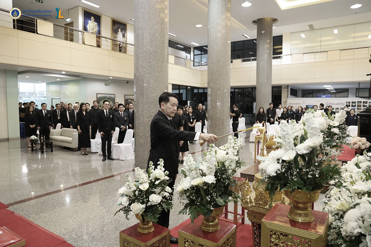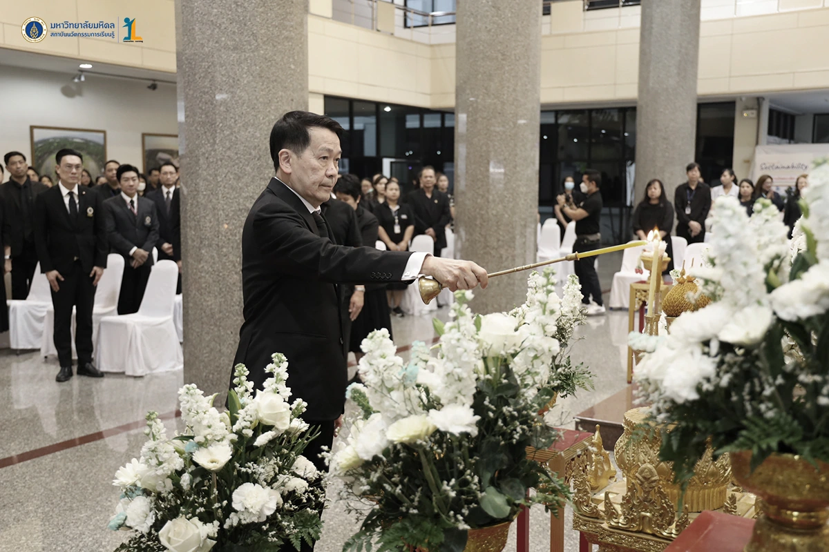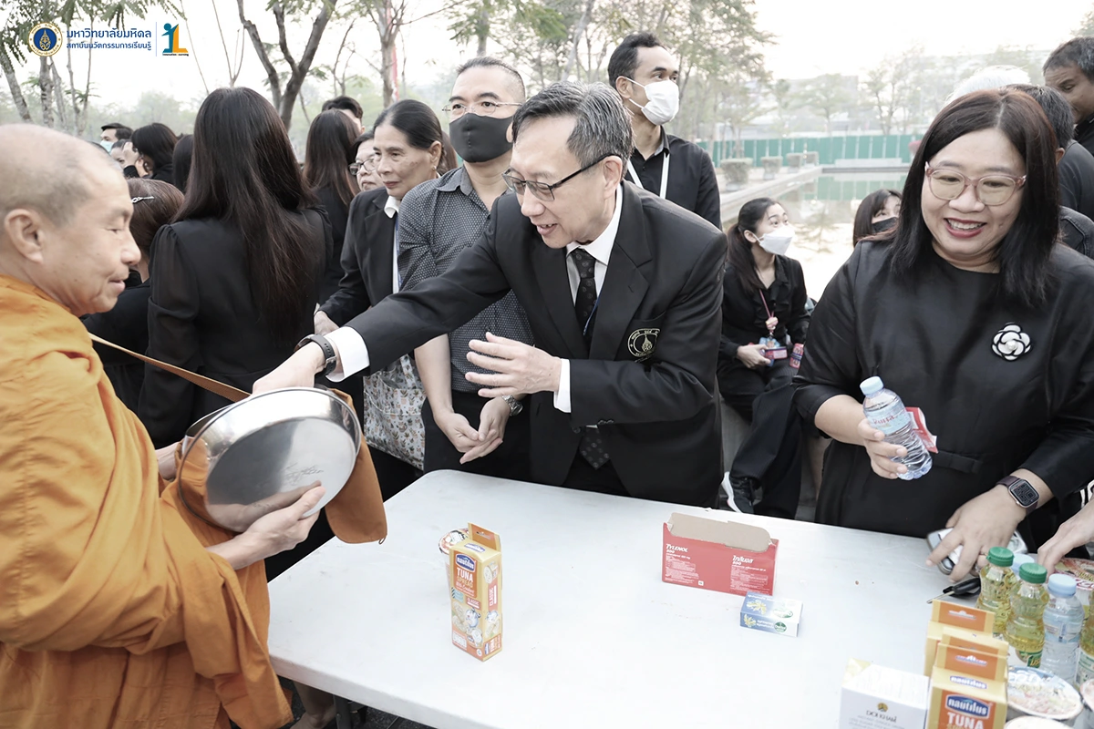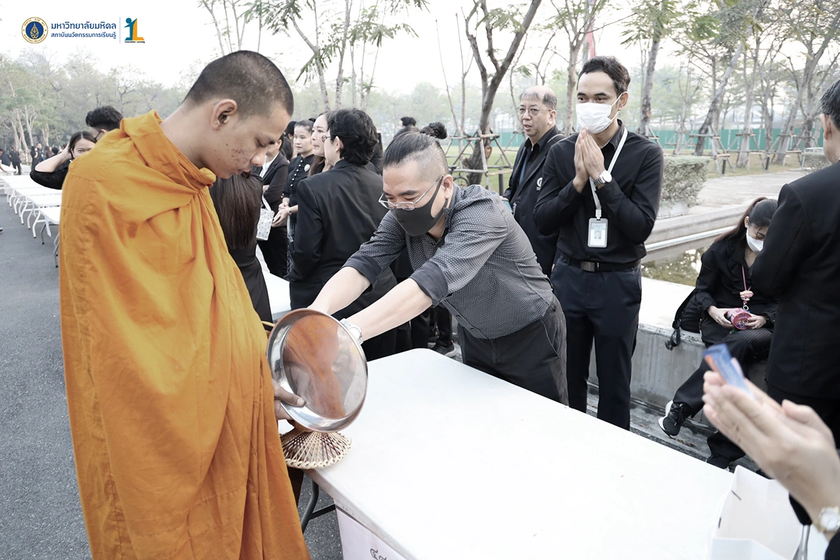รองศาสตราจารย์ ดร.นายแพทย์ชัยเลิศ พิชิตพรชัย ผู้อำนวยการสถาบันนวัตกรรมการเรียนรู้ พร้อมด้วยคณะผู้บริหารและบุคลากรสถาบันนวัตกรรมการเรียนรู้ ร่วมทำบุญตักบาตรพระสงฆ์จำนวน 30 รูป และเข้าร่วมพิธีบำเพ็ญกุศล 100 วันอุทิศถวายแด่สมเด็จพระนางเจ้าสิริกิติ์ พระบรมราชินีนาถ พระบรมราชชนนีพันปีหลวง วันที่ 30 มกราคม 2569 เพื่อน้อมสำนึกในพระมหากรุณาธิคุณ และแสดงความจงรักภักดี ณ สำนักงานอธิการบดี มหาวิทยาลัยมหิดล ศาลายา