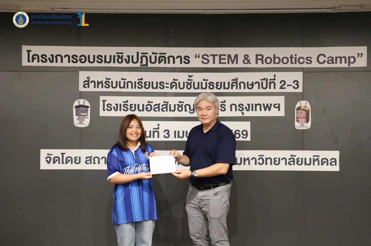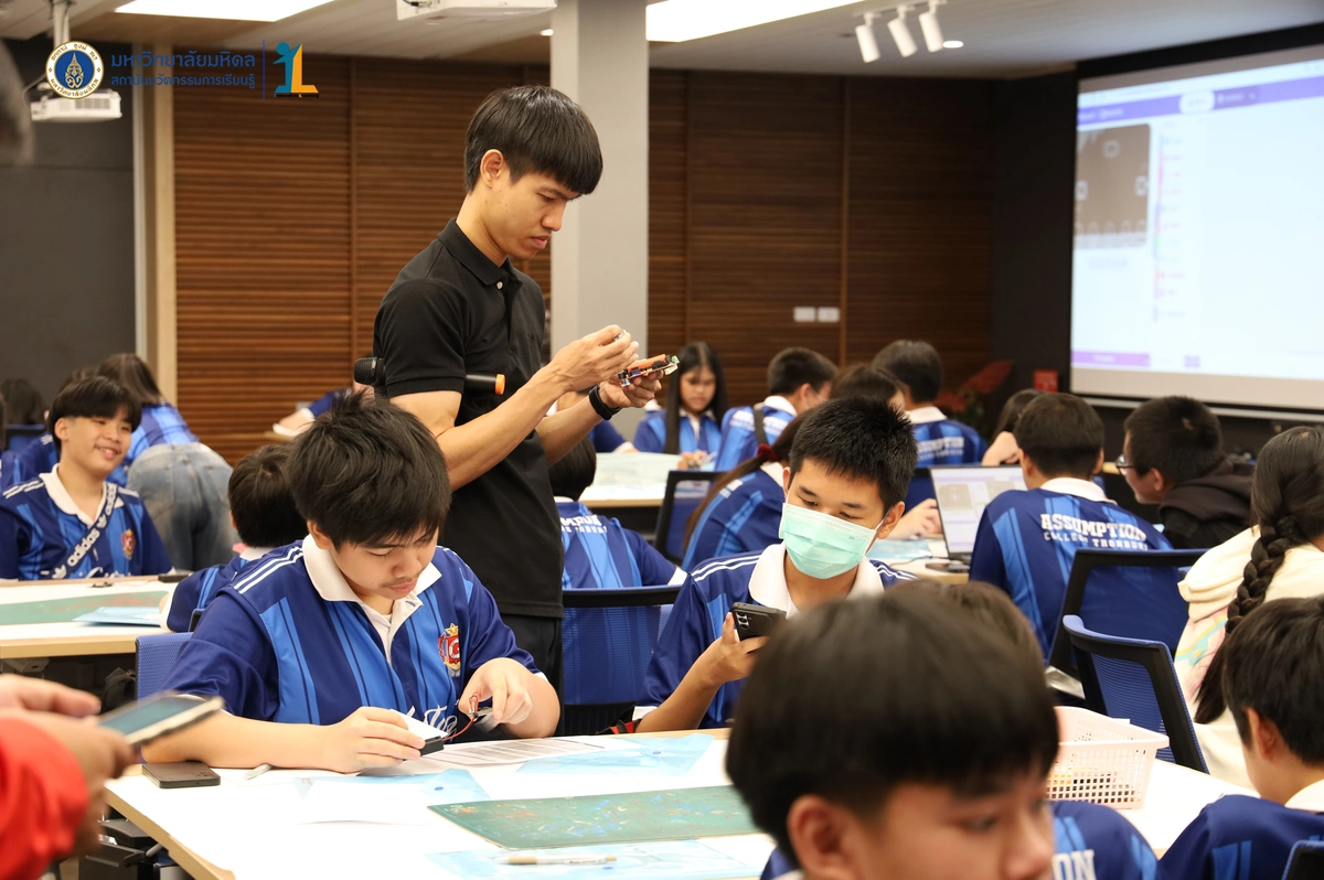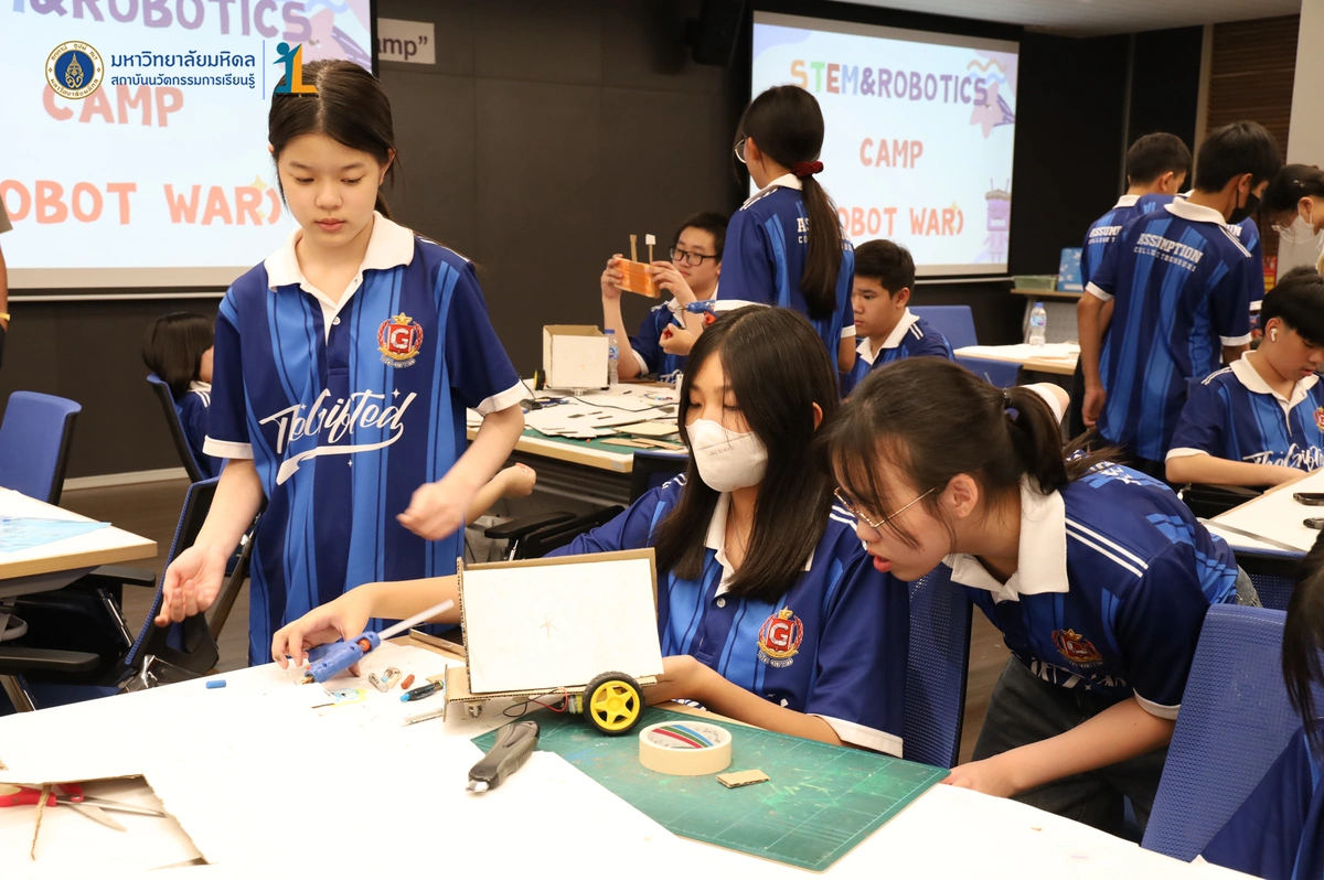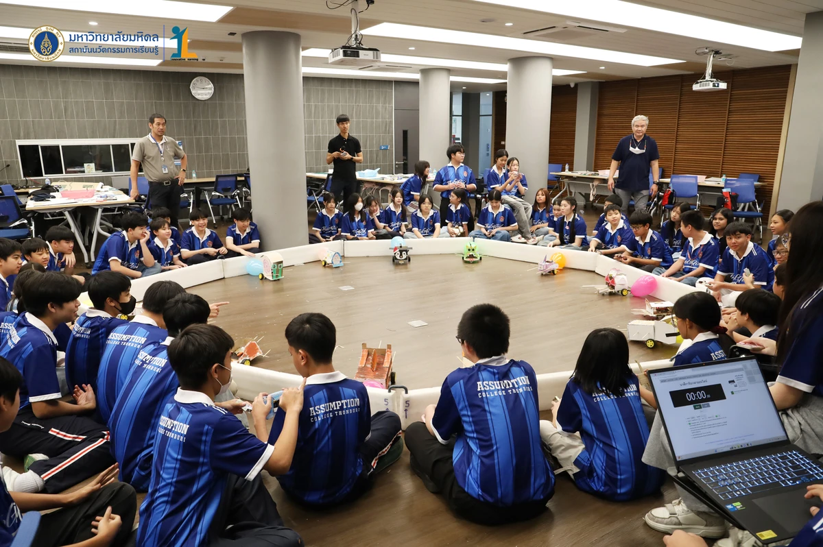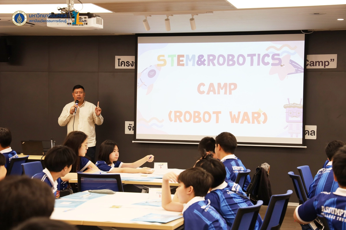 สถาบันนวัตกรรมการเรียนรู้ มหาวิทยาลัยมหิดล จัดโครงการอบรมเชิงปฏิบัติการ “STEM & Robotics Camp (กิจกรรม Robot War)” สำหรับนักเรียนระดับชั้นมัธยมศึกษาปีที่ 2 และ 3 ห้องเรียนพิเศษวิทยาศาสตร์ตามแนวทางสสวท. และสอวน. โรงเรียนอัสสัมชัญธนบุรี กรุงเทพฯ ทีมวิทยากรโดย ดร.พงษ์ผไท กิจรุ่งโรจนาพร, นายนำโชค ขุนหมื่นวงค์, นายพัชรศิษฏ์ ปีเจริญ และนายพัฒนพงศ์ คนเที่ยง วันที่ 3 เมษายน 2569 ณ ห้องประชุมชัยเลิศ พิชิตพรชัย (ห้อง 101) ชั้น 1 สถาบันนวัตกรรมการเรียนรู้ มหาวิทยาลัยมหิดล ศาลายา