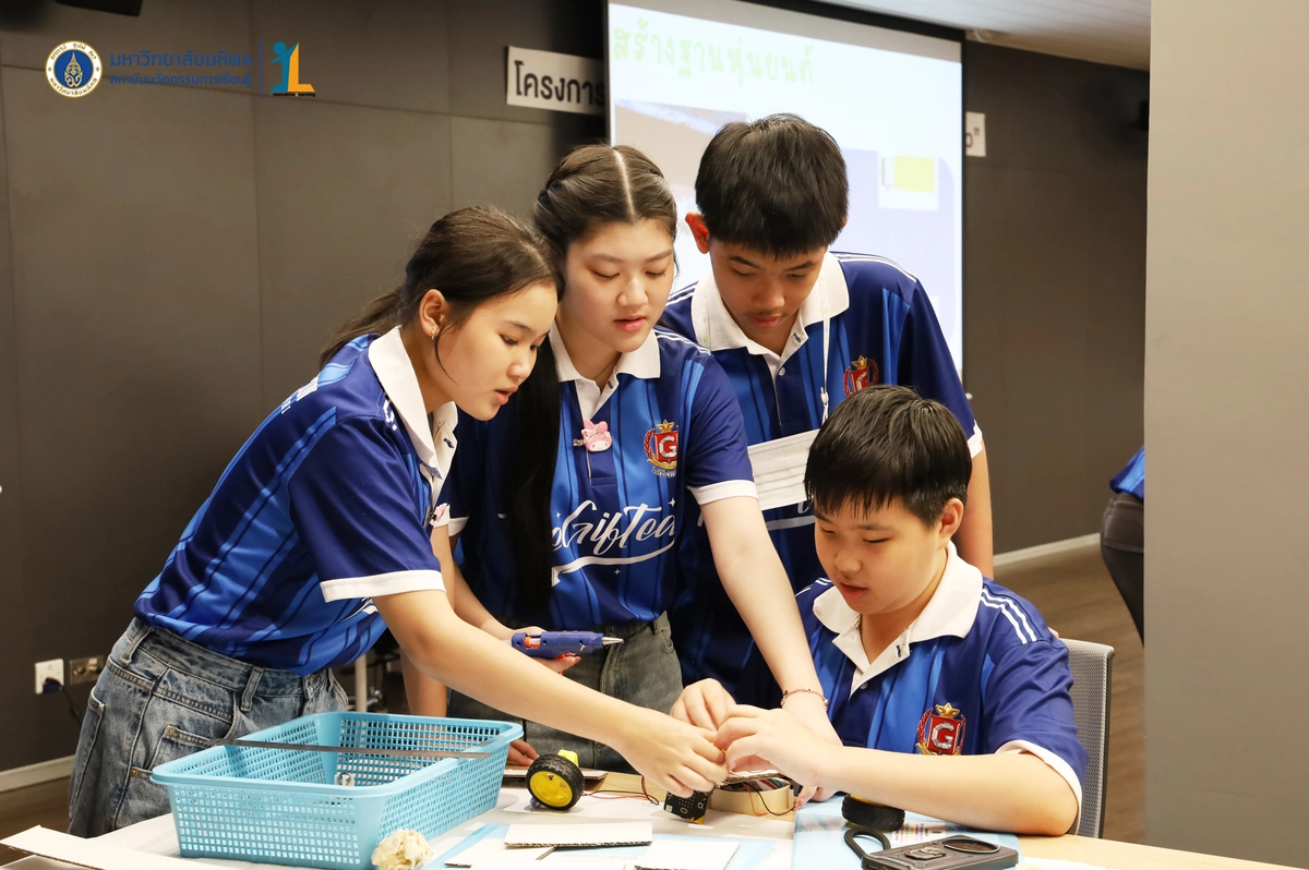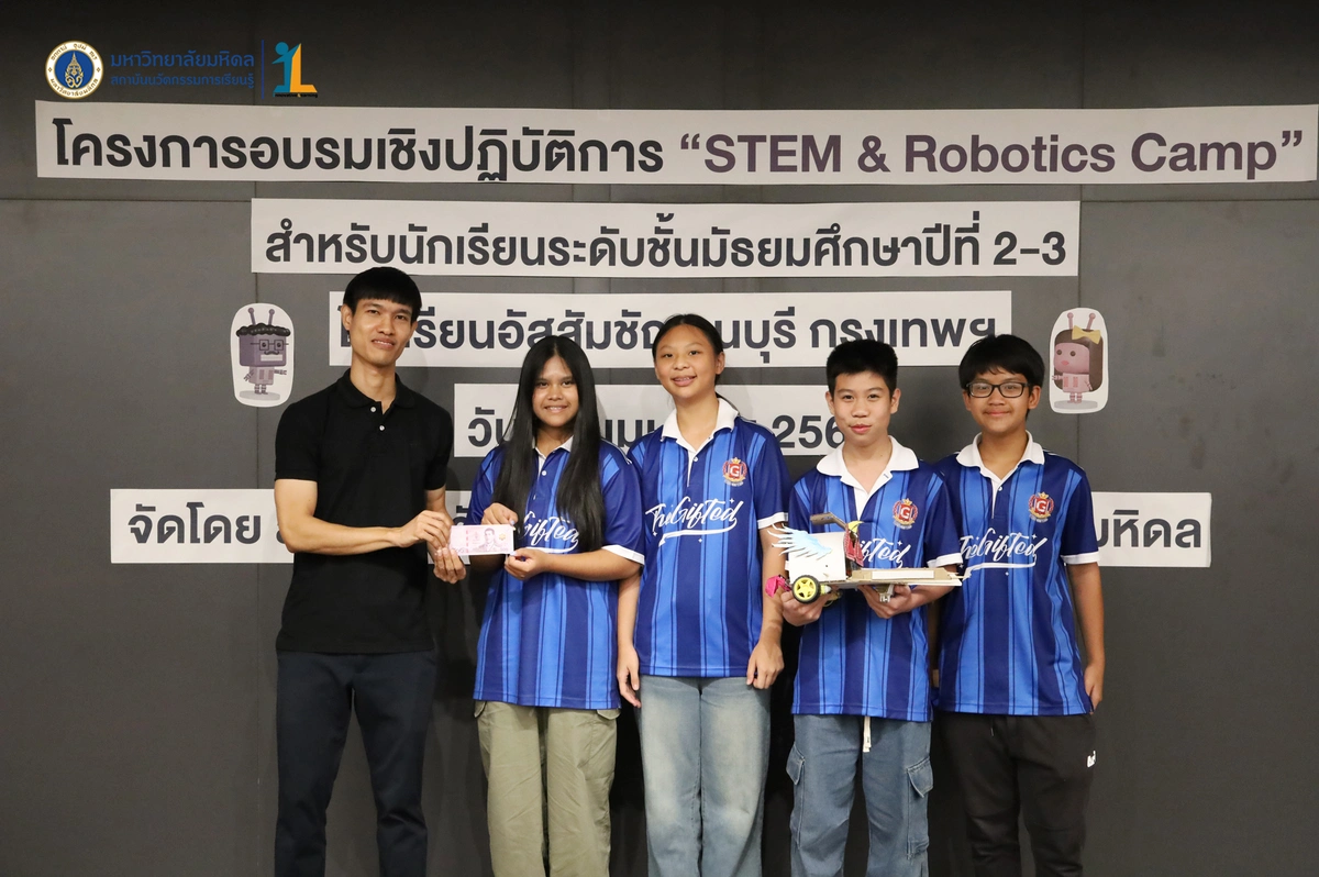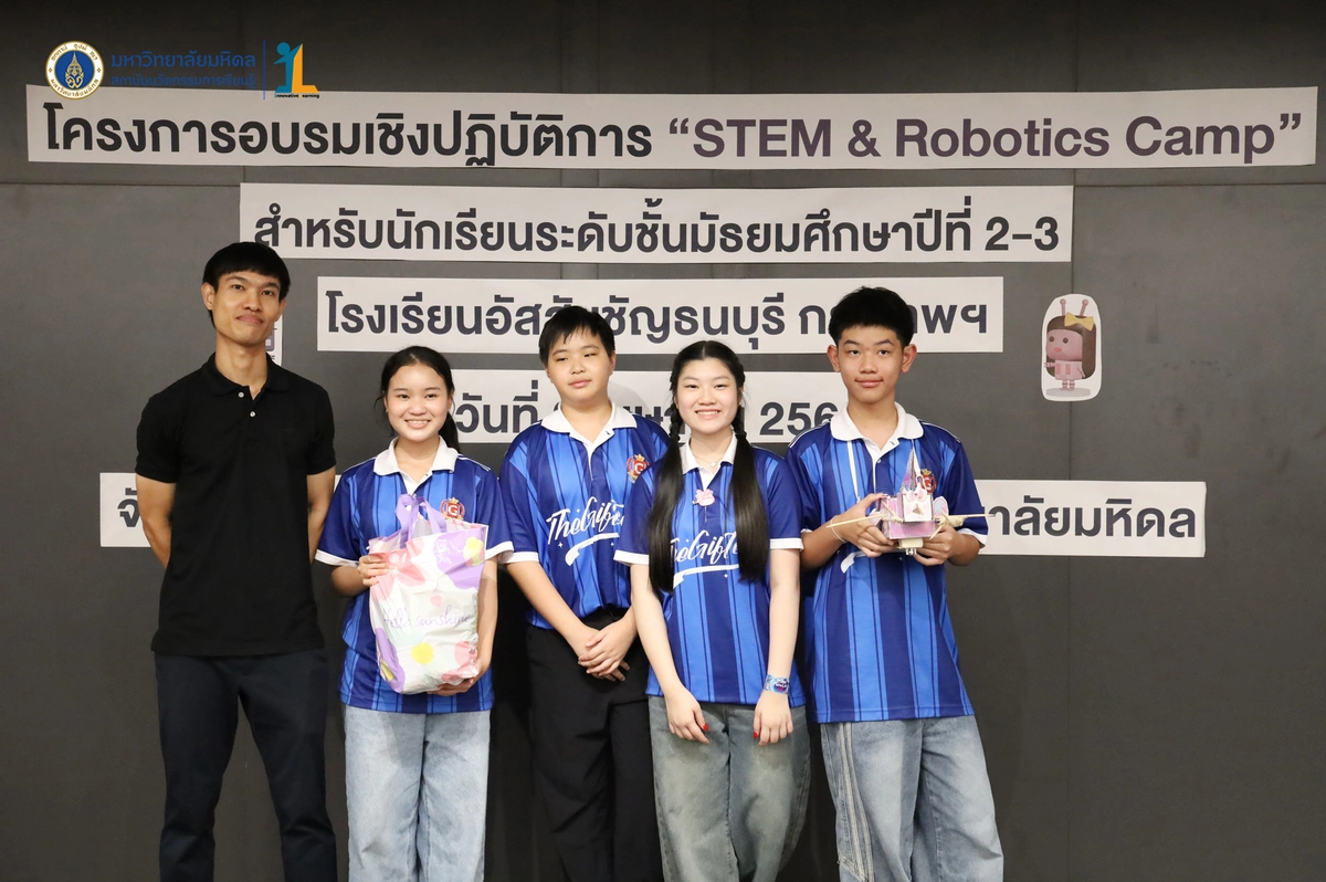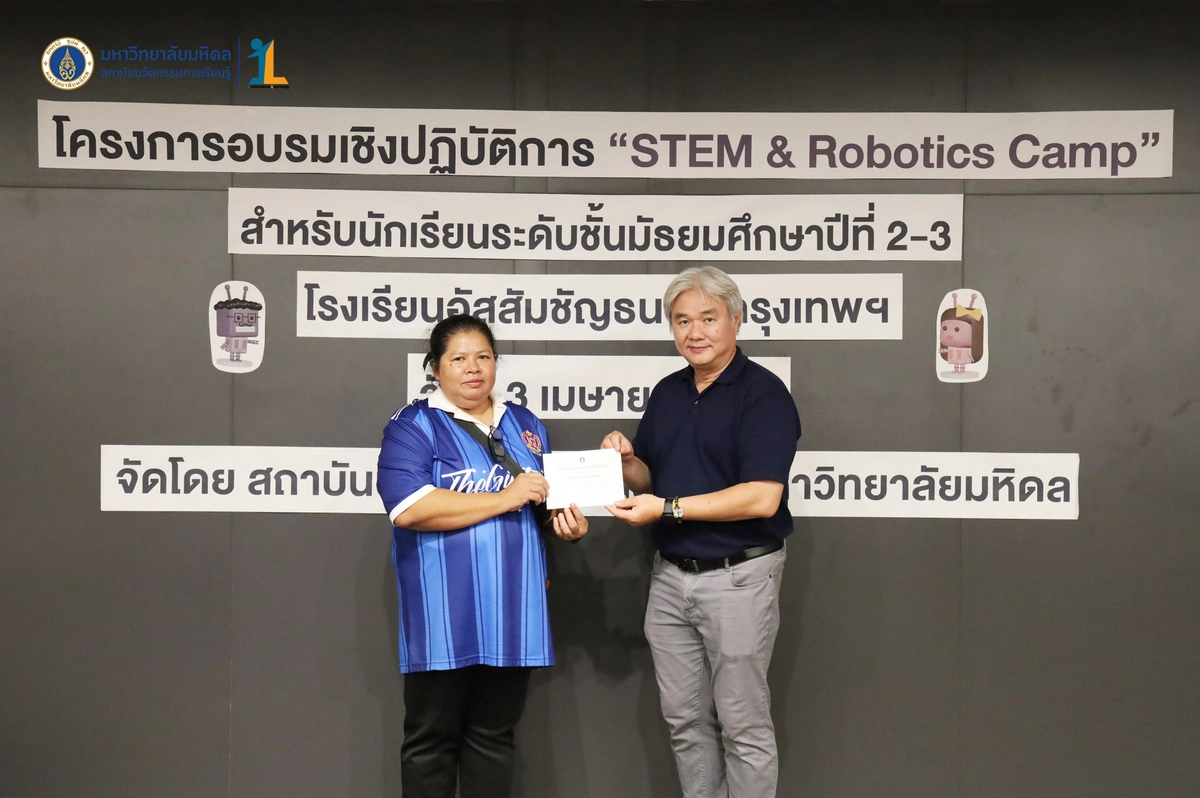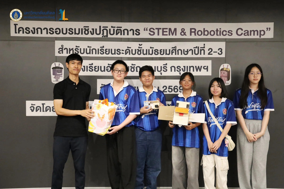 สถาบันนวัตกรรมการเรียนรู้ มหาวิทยาลัยมหิดล จัดโครงการอบรมเชิงปฏิบัติการ “STEM & Robotics Camp (กิจกรรม Robot War)” สำหรับนักเรียนระดับชั้นมัธยมศึกษาปีที่ 2 และ 3 ห้องเรียนพิเศษวิทยาศาสตร์ตามแนวทางสสวท. และสอวน. โรงเรียนอัสสัมชัญธนบุรี กรุงเทพฯ ทีมวิทยากรโดย ดร.พงษ์ผไท กิจรุ่งโรจนาพร, นายนำโชค ขุนหมื่นวงค์, นายพัชรศิษฏ์ ปีเจริญ และนายพัฒนพงศ์ คนเที่ยง วันที่ 3 เมษายน 2569 ณ ห้องประชุมชัยเลิศ พิชิตพรชัย (ห้อง 101) ชั้น 1 สถาบันนวัตกรรมการเรียนรู้ มหาวิทยาลัยมหิดล ศาลายา