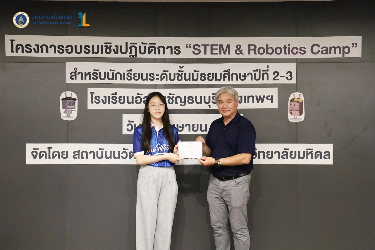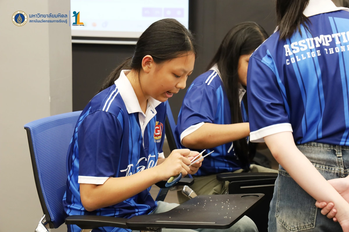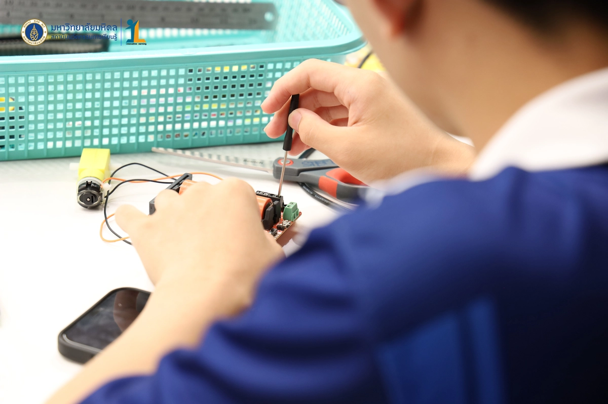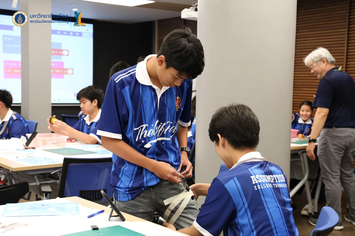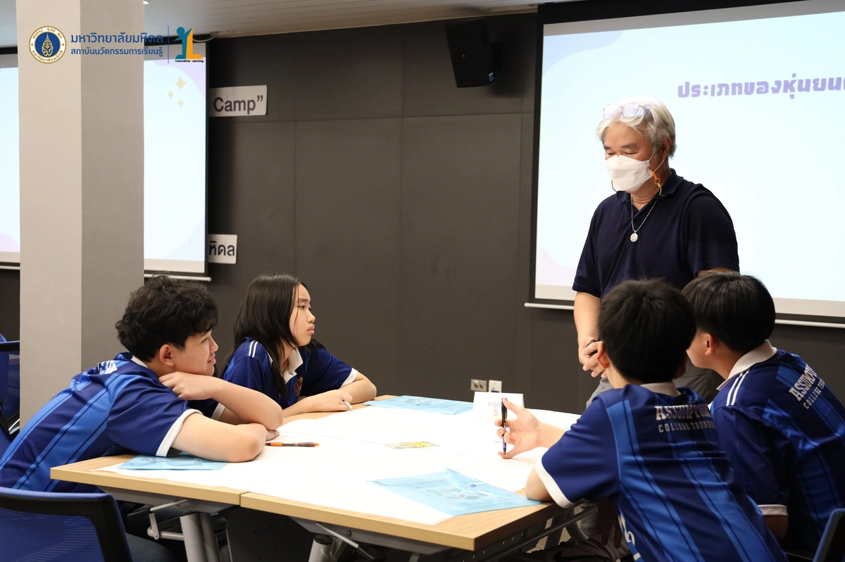 สถาบันนวัตกรรมการเรียนรู้ มหาวิทยาลัยมหิดล จัดโครงการอบรมเชิงปฏิบัติการ “STEM & Robotics Camp (กิจกรรม Robot War)” สำหรับนักเรียนระดับชั้นมัธยมศึกษาปีที่ 2 และ 3 ห้องเรียนพิเศษวิทยาศาสตร์ตามแนวทางสสวท. และสอวน. โรงเรียนอัสสัมชัญธนบุรี กรุงเทพฯ ทีมวิทยากรโดย ดร.พงษ์ผไท กิจรุ่งโรจนาพร, นายนำโชค ขุนหมื่นวงค์, นายพัชรศิษฏ์ ปีเจริญ และนายพัฒนพงศ์ คนเที่ยง วันที่ 3 เมษายน 2569 ณ ห้องประชุมชัยเลิศ พิชิตพรชัย (ห้อง 101) ชั้น 1 สถาบันนวัตกรรมการเรียนรู้ มหาวิทยาลัยมหิดล ศาลายา