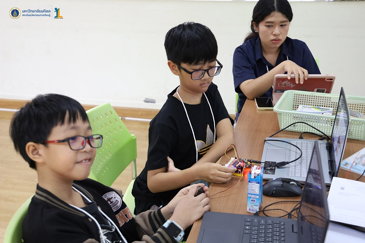 สถาบันนวัตกรรมการเรียนรู้ มหาวิทยาลัยมหิดล จัด โครงการอบรมเชิงปฏิบัติการ “STEM & Robotics Camp” ปีที่ 5 กิจกรรม “SMART IOT SPARKS CODING CAMP” สำหรับนักเรียนระดับชั้นประถมปีที่ 4 – มัธยมศึกษาปีที่ 6 วันที่ 25 ตุลาคม 2568 ทีมวิทยากรโดย ผู้ช่วยศาสตราจารย์ ดร.มนต์อมร ปรีชารัตน์, นายพงษ์ผไท กิจรุ่งโรจนาพร และนายนำโชค ขุนหมื่นวงค์ ณ ห้องประชุม 109 อาคารปัญญาพิพัฒน์ สถาบันนวัตกรรมการเรียนรู้ มหาวิทยาลัยมหิดล ศาลายา